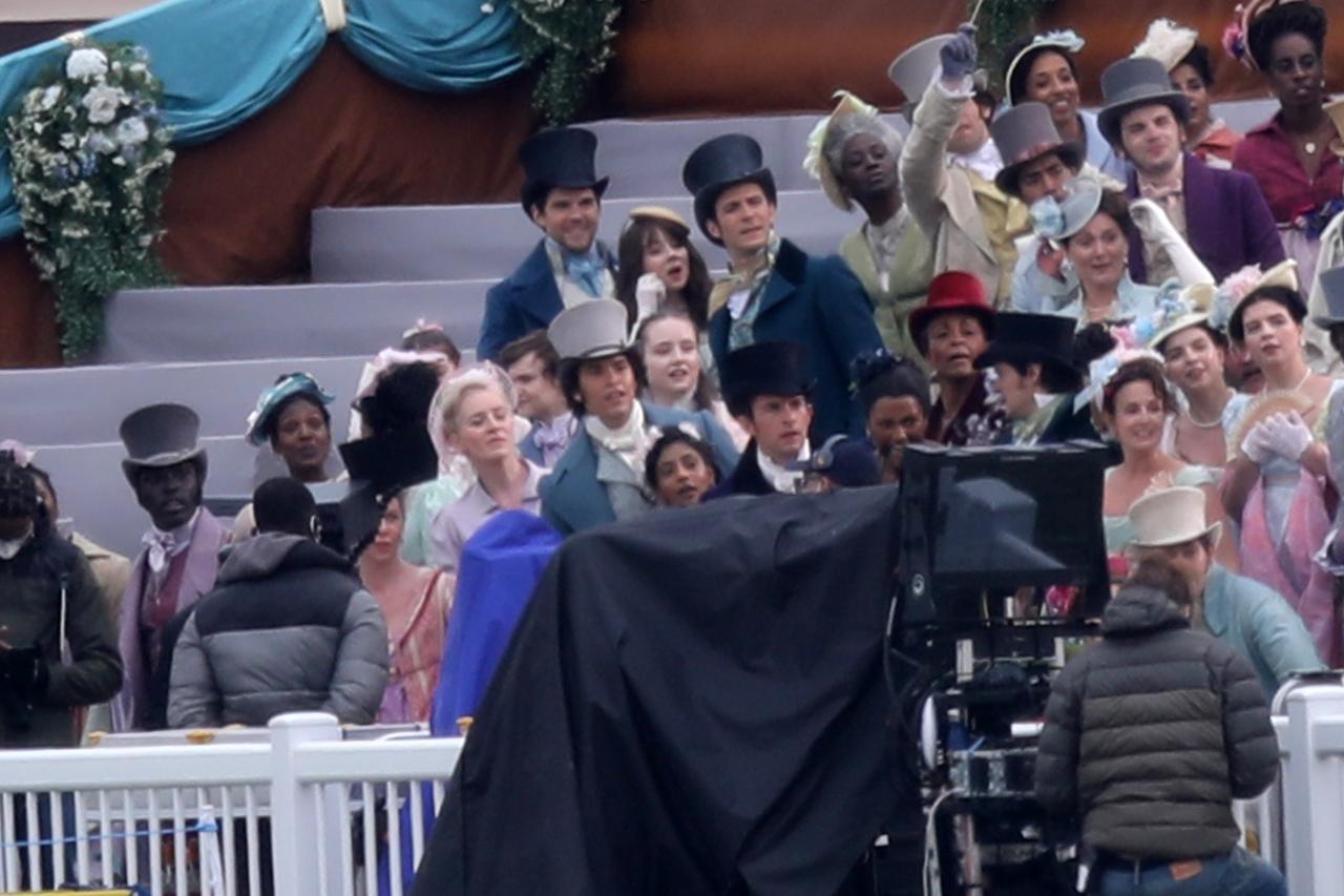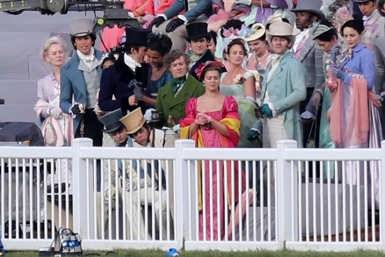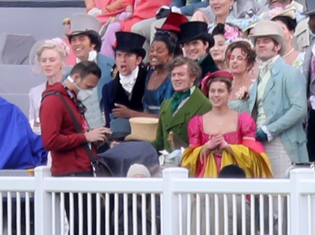 この日はダフネ役のフィービーの姿は目撃されなかったけれど、その他のブリジャートン家のきょうだい達の姿も。また、全体を見れば、そのカラフルなトーンはシーズン1から変わりがないことも分かる。