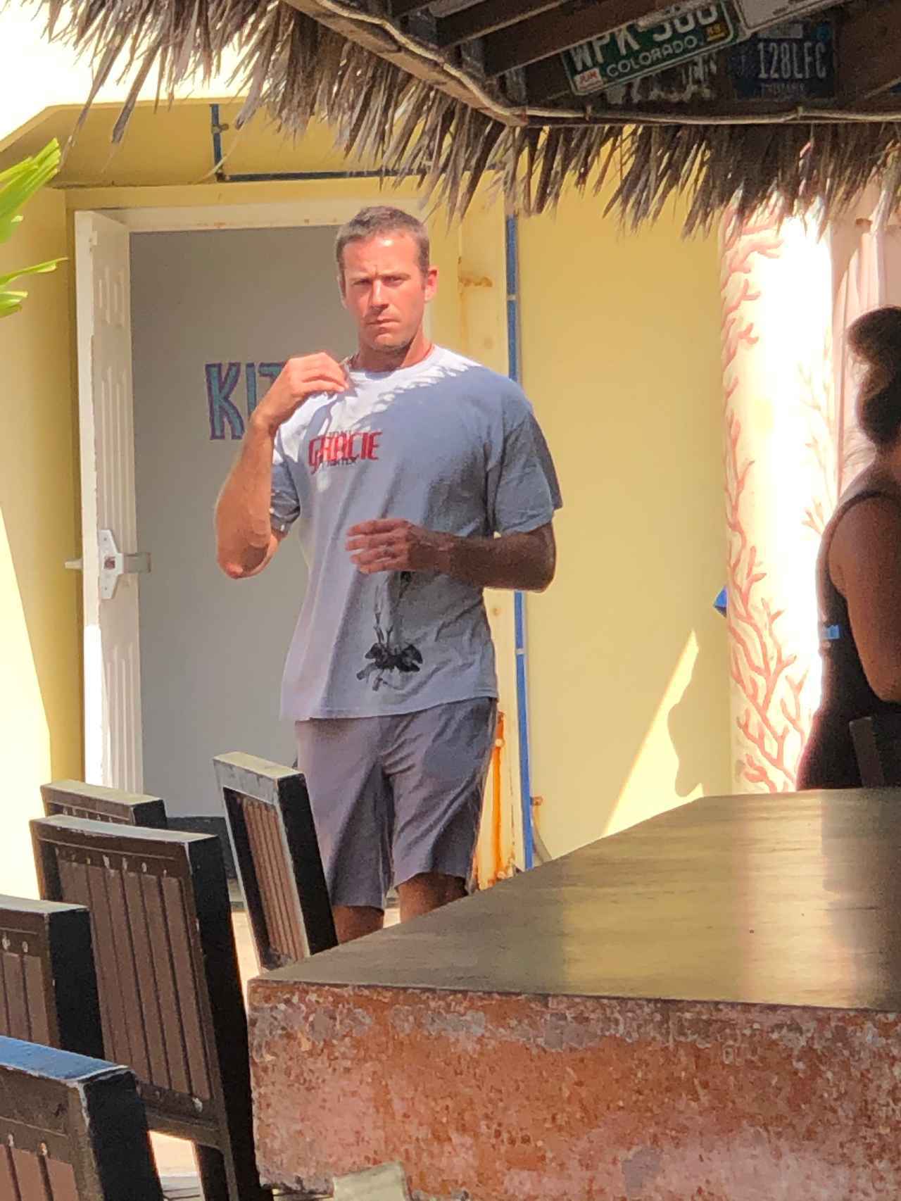 元交際相手の女性からレイプ被害を告発されて以来、表舞台から姿を消している俳優のアーミー・ハマーが、ケイマン諸島で複数の友人と食事をしているところをカメラがとらえた。