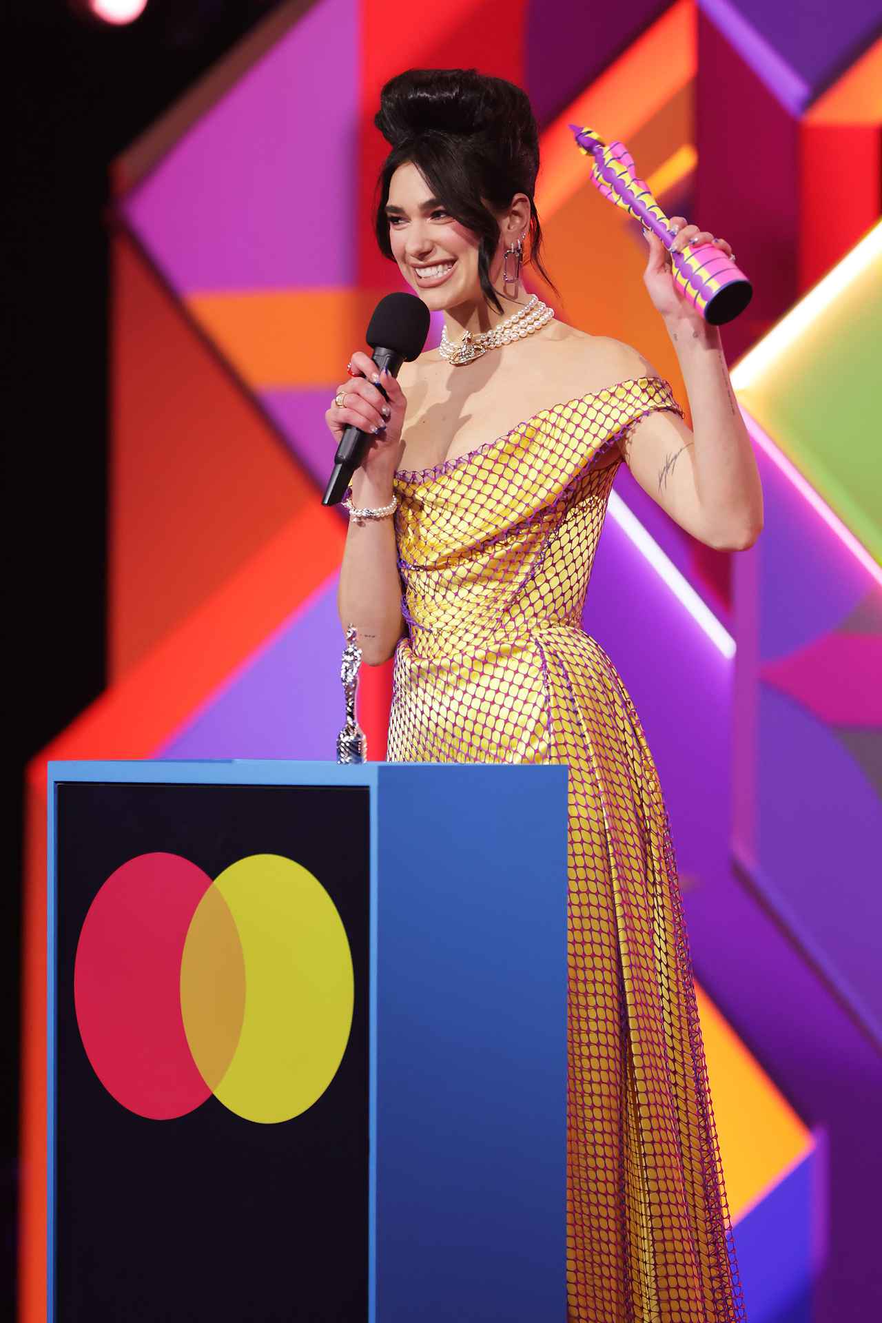 また、デュアはこの日の授賞式でパフォーマンスも披露しており、イギリスのユニオンジャックが大々的にデザインされた衣装に身を包み、『フューチャー・ノスタルジア』の楽曲のメドレーをパフォーマンスした。