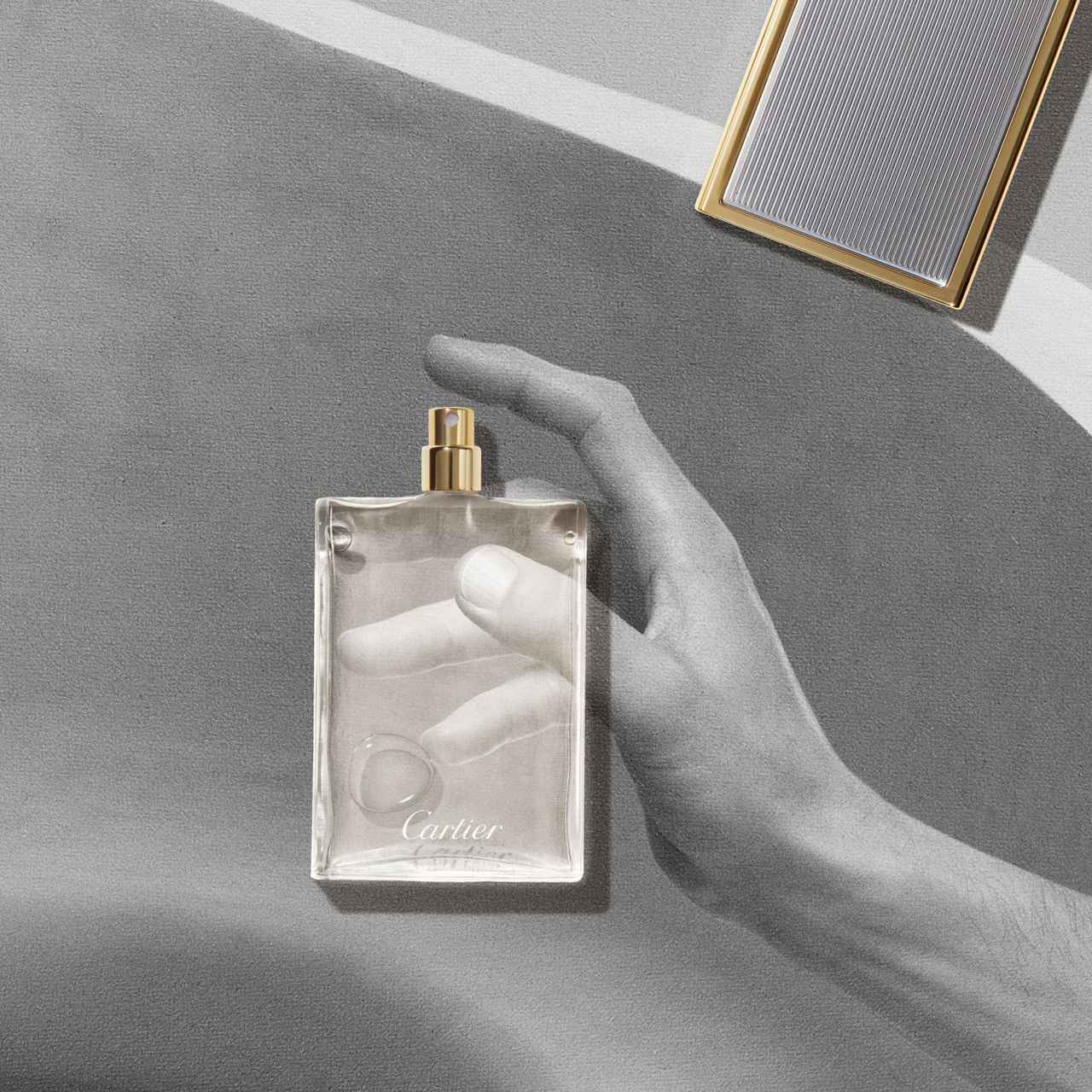 「レ ネセセール ア パルファン カルティエ」の香水ケースは、特別に開発されたマグネット構造になっており、ガラス製リフィルを収めることができる。シンプルで独創的、そしてモダンなデザインでありがなら、スムーズな使い心地も追求。スリムなポケットサイズでこの上なくシックなフレグランスを、いつでも手の届く場所に忍ばすことができる。