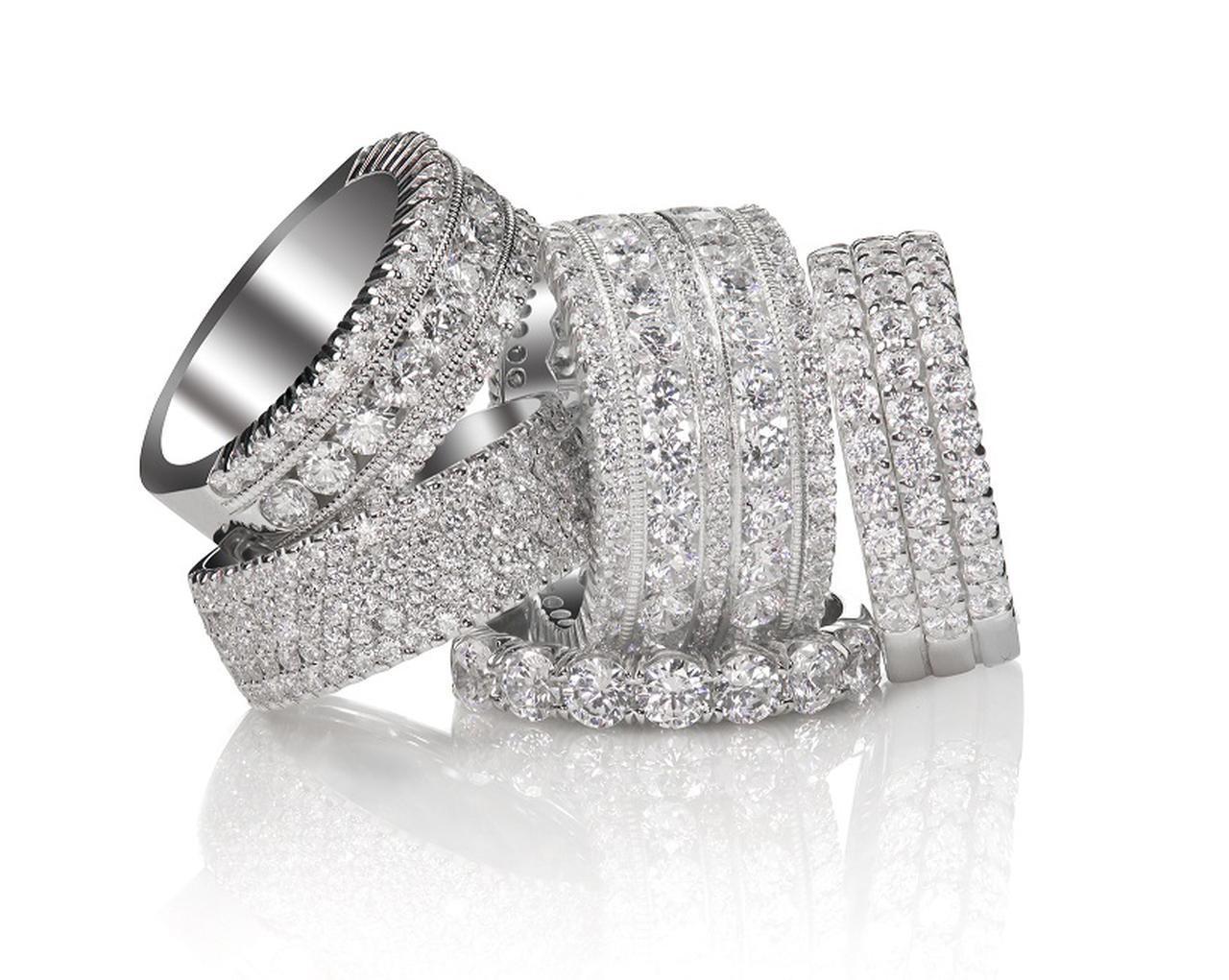 どの角度からでも宝石の美しい煌めきを楽しめることや、途切れないデザインが“永遠の愛”を象徴するため、近年、結婚指輪や婚約指輪のバンド部分に取り入れるデザインとして人気が高まっている。