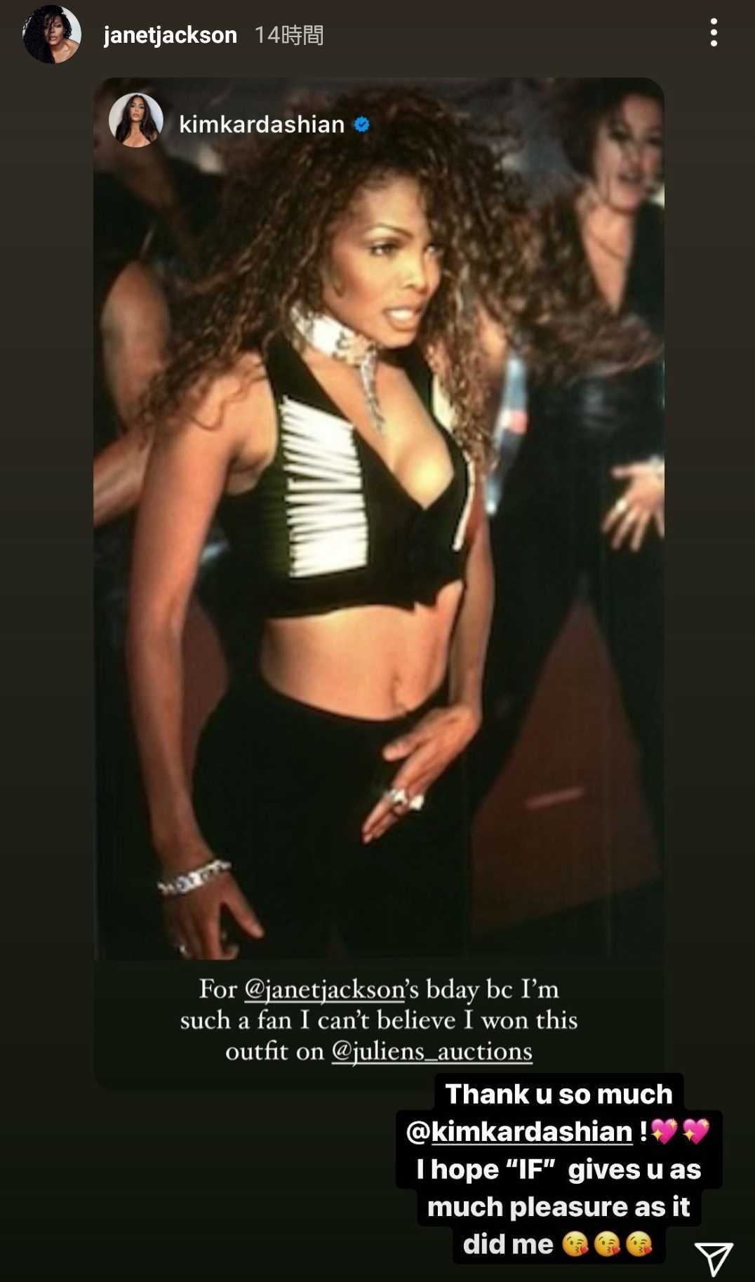そしてキムは「IF」のミュージックビデオの写真に「ジャネット・ジャクソンの誕生日に大ファンの私がジュリアンズ・オークションでこれを落札できたことが信じられない」とキャプションをつけ、インスタグラムのストーリーズで落札したことを報告。