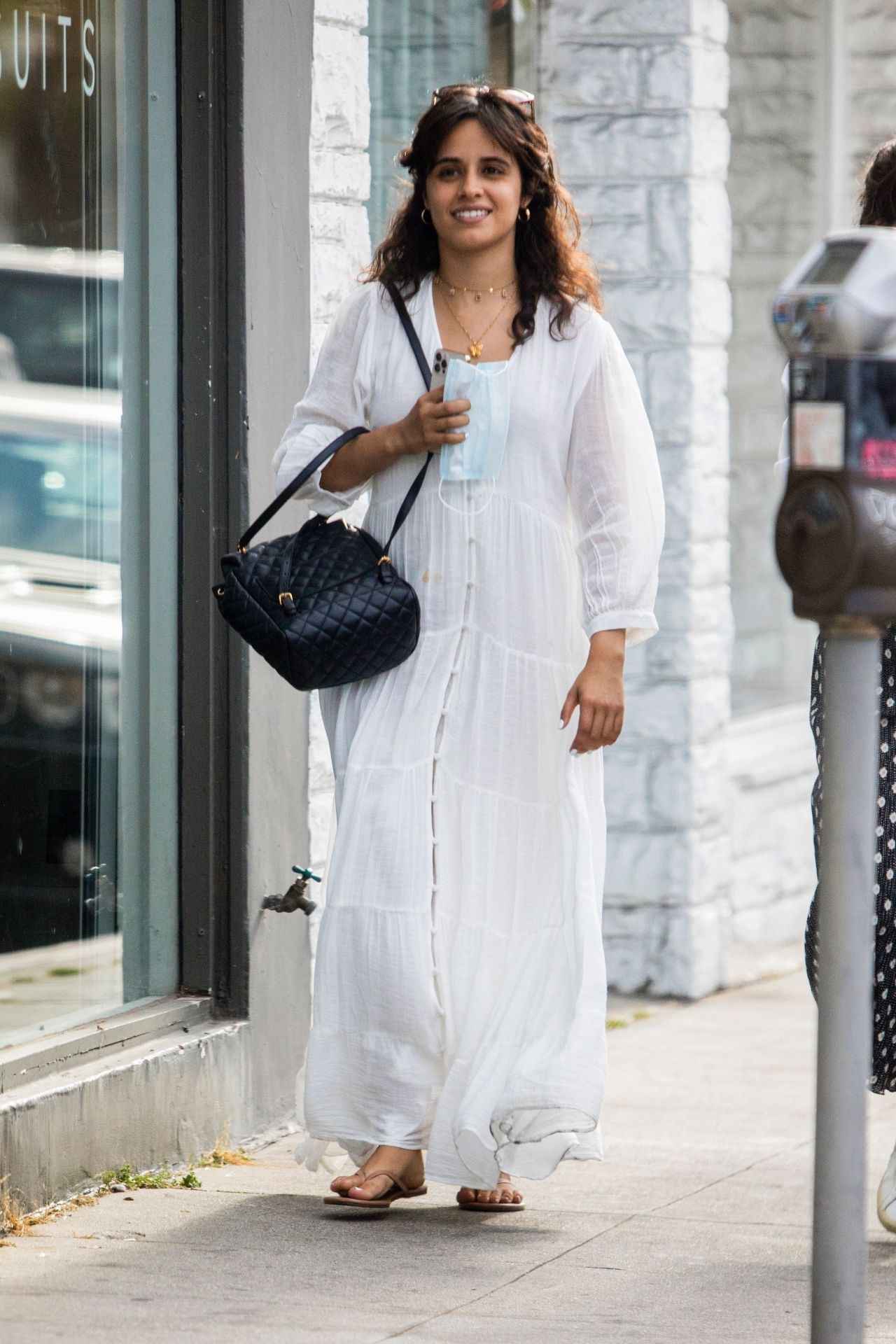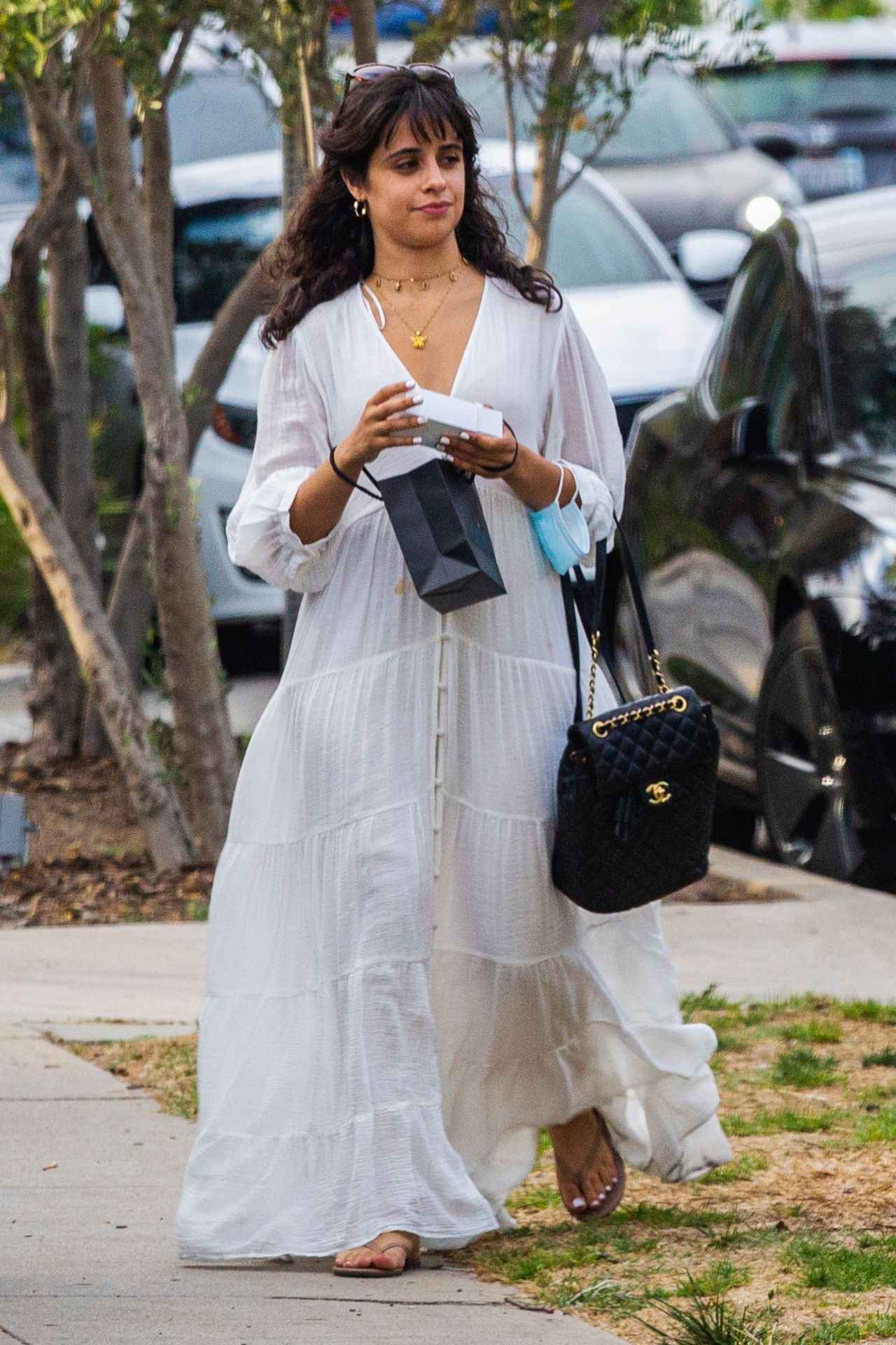 ザラのオフホワイトのロングワンピで爽やかなサマーコーデを披露した、シンガーのカミラ・カベロ。ロサンゼルスでショッピング中のカミラは、ワンピのVネックラインにゴールドのネックレスを重ねて着けて、ラフながらも華やかにコーデして。