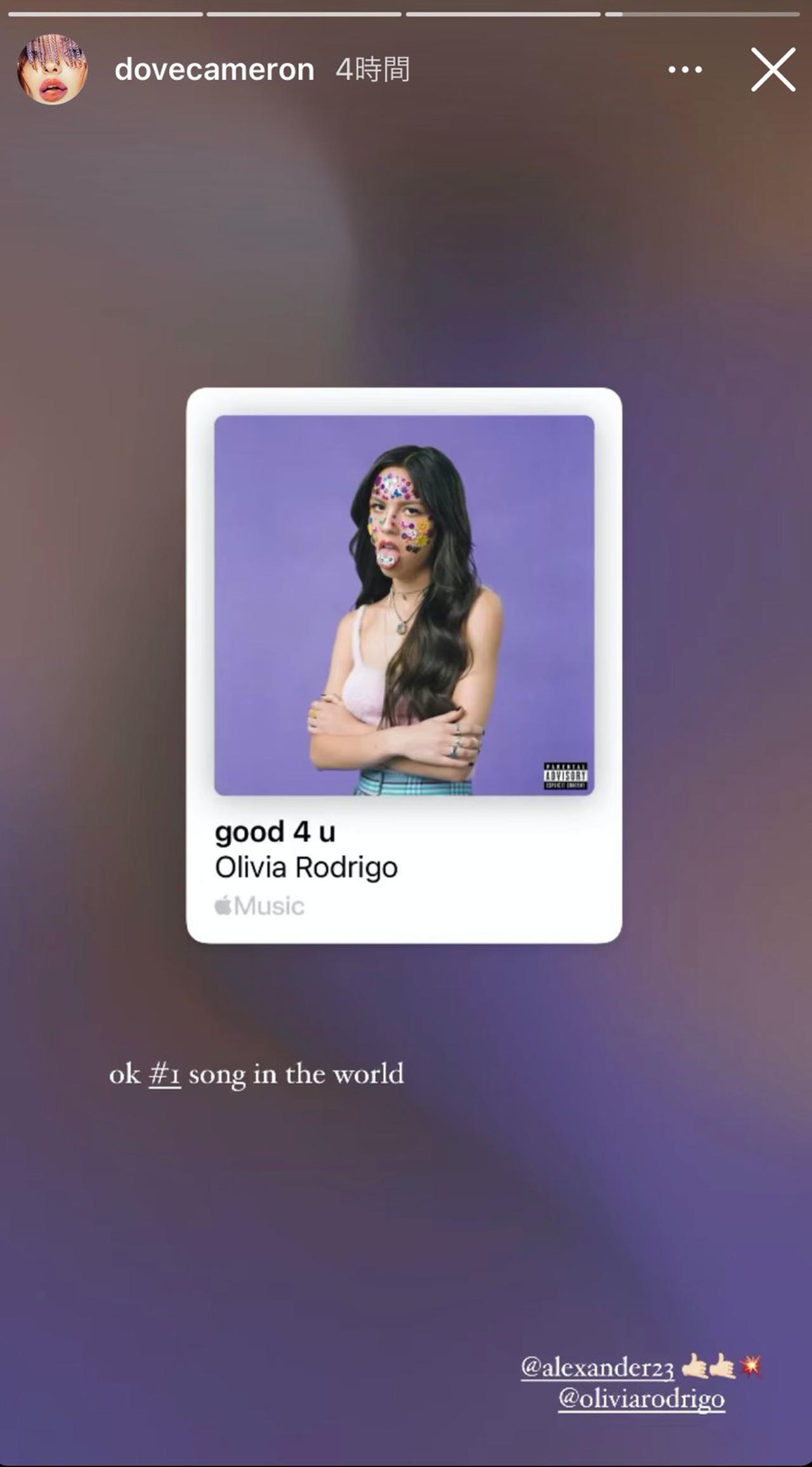 オリヴィアは自身2曲目となる全米1位を獲得したことを受け、最新シングルチャートをインスタグラムに投稿。世界各国のデータを集計したグローバル200チャートでも首位を獲得した「good 4 u」を共作したアレクサンダー23とダン・ニグロをタグ付けし、「『good 4 u』が1位だよ! 本当に嬉しい!」とその喜びを綴った。