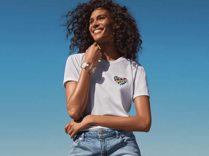 その一環として発売されるジェンダーニュートラルなTシャツ「レインボー ハートバッジTシャツ」は、Michael Korsの文字をデザインしたレインボーカラーのハートバッジがあしらわれ、オーガニックコットン素材で作られている。