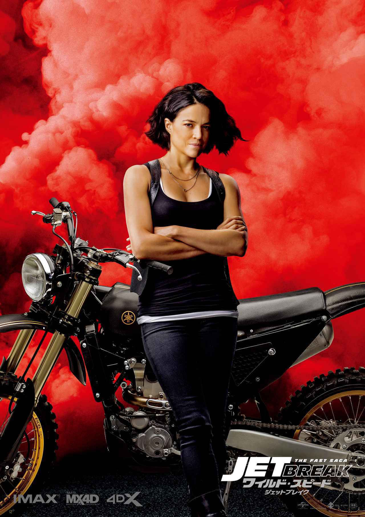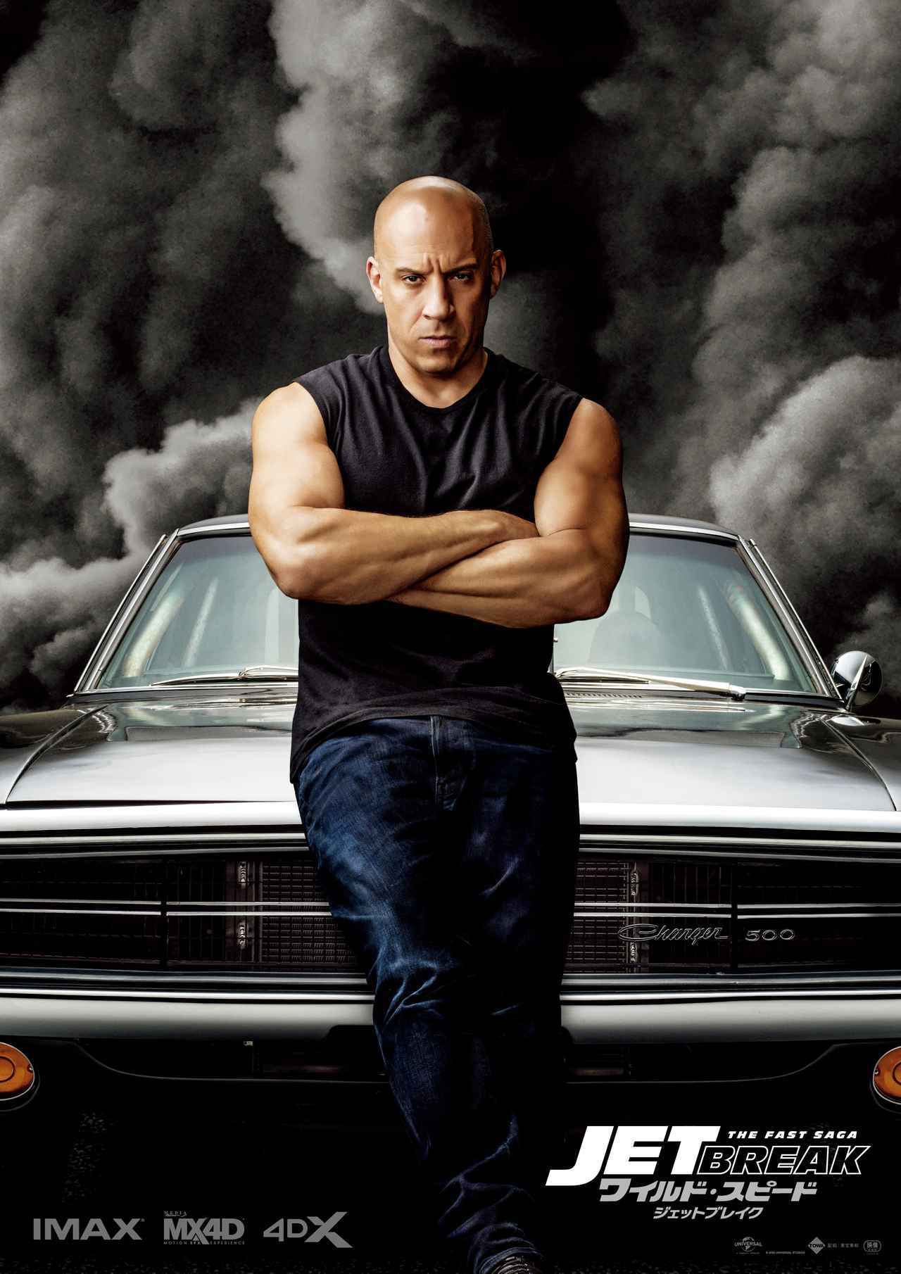 “父親の形見”でもある黒のダッチ・チャージャーの前に立ち、並々ならぬ決意を滲ませた表情のヴィン・ディーゼル演じるドミニクや、ドミニクのパートナーとして公私ともに彼を支えるミシェル・ロドリゲス演じるレティをはじめ、ドムの妹であり、本作ではトレット兄弟の対立にどのように絡んでいくのか注目の集まるジョーダナ・ブリュースター演じるミア、さらに衝撃のカムバックを果たした、シリーズ屈指の人気を誇るサン・カン演じるハンらお馴染みのメンバーが大集結。