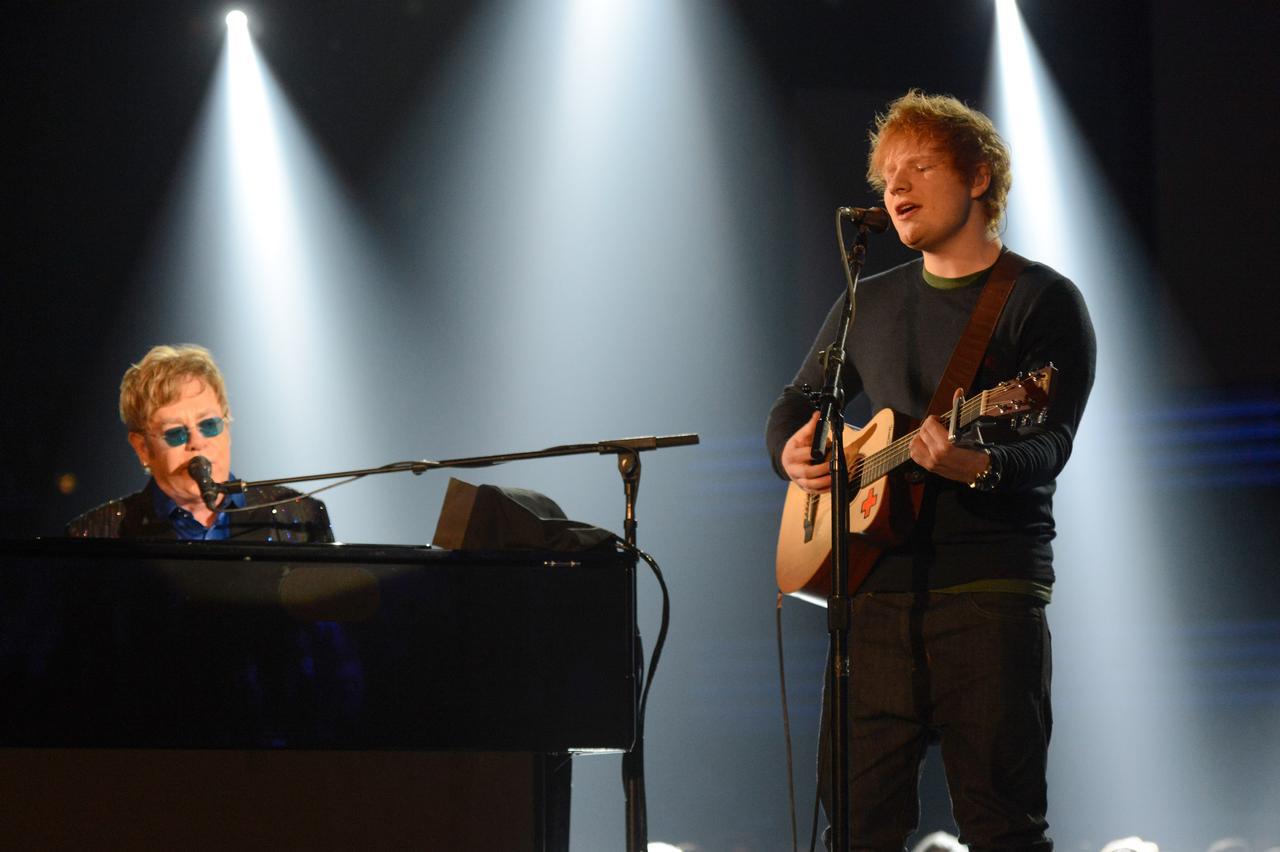 第55回グラミー賞授賞式で一緒にパフォーマンスを披露したエルトン・ジョンとエド・シーラン。