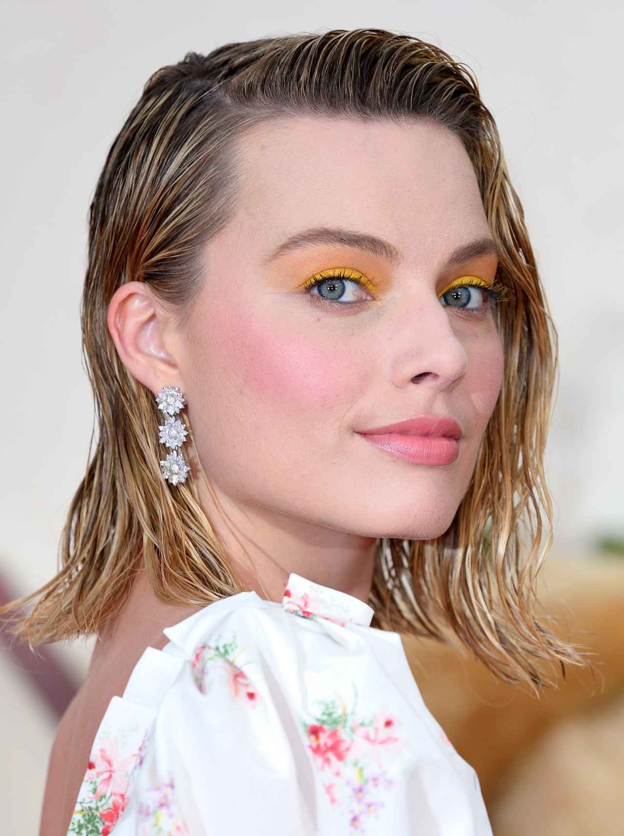 イエローアイシャドウを使ったメイクの中でもとくに取り入れやすいのが、アイホールのキワだけに塗ること。俳優のマーゴット・ロビーは、アイホール全体にベージュ系のカラーをのせて、まつげのキワだけにイエローのアイシャドウを塗ったアイメイクに。さりげない取り入れ方ながら、オシャレ感を演出できる。