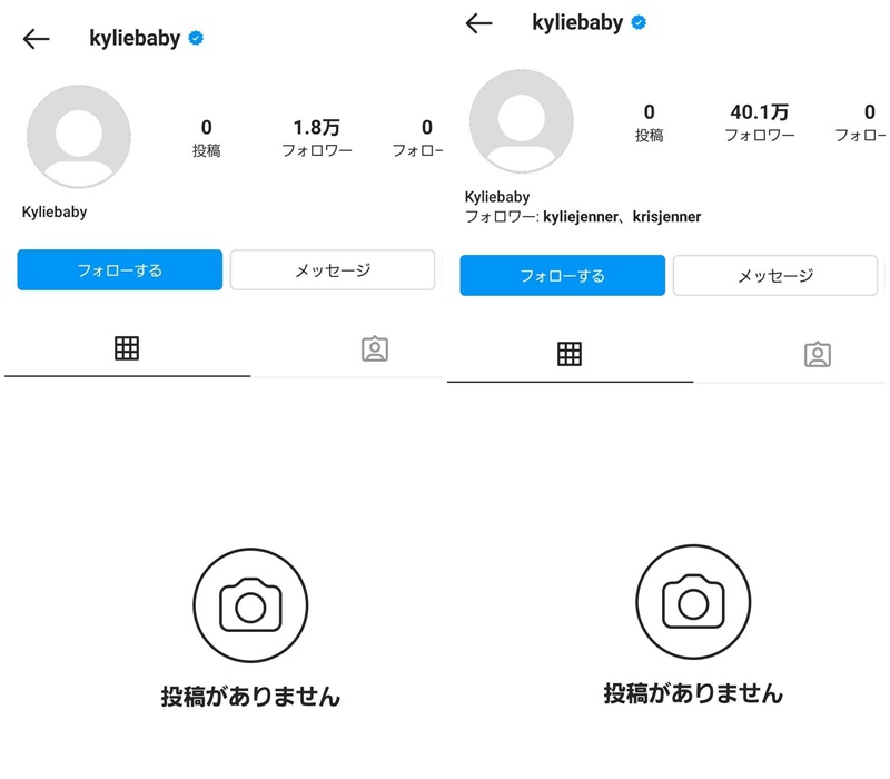 つい先日には、カイリー・ベイビーのインスタグラムの存在があるとウワサになり、その当時はフォロワー1万8,000人程度だったものの、カイリーがタグづけしたということもあり現在では40万人以上がフォローしている。
