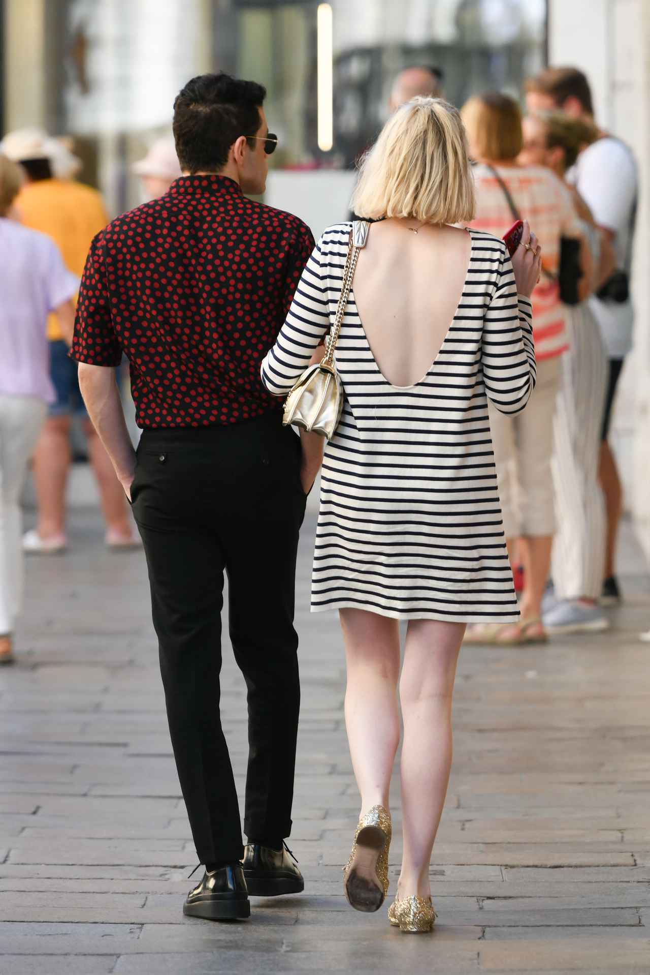 観光地であるイタリアのヴェネツィアでは、リラックスしたスタイルで、恋人のラミ・マレックと歩いていたルーシー。ストライプ柄のワンピースには、ゴールドの派手すぎないパンプスを合わせた。そしてこのワンピースは後ろが大きく開いたデザインとなっており、一見すると無難なアイテムにも、彼女らしさが見えるチョイス。