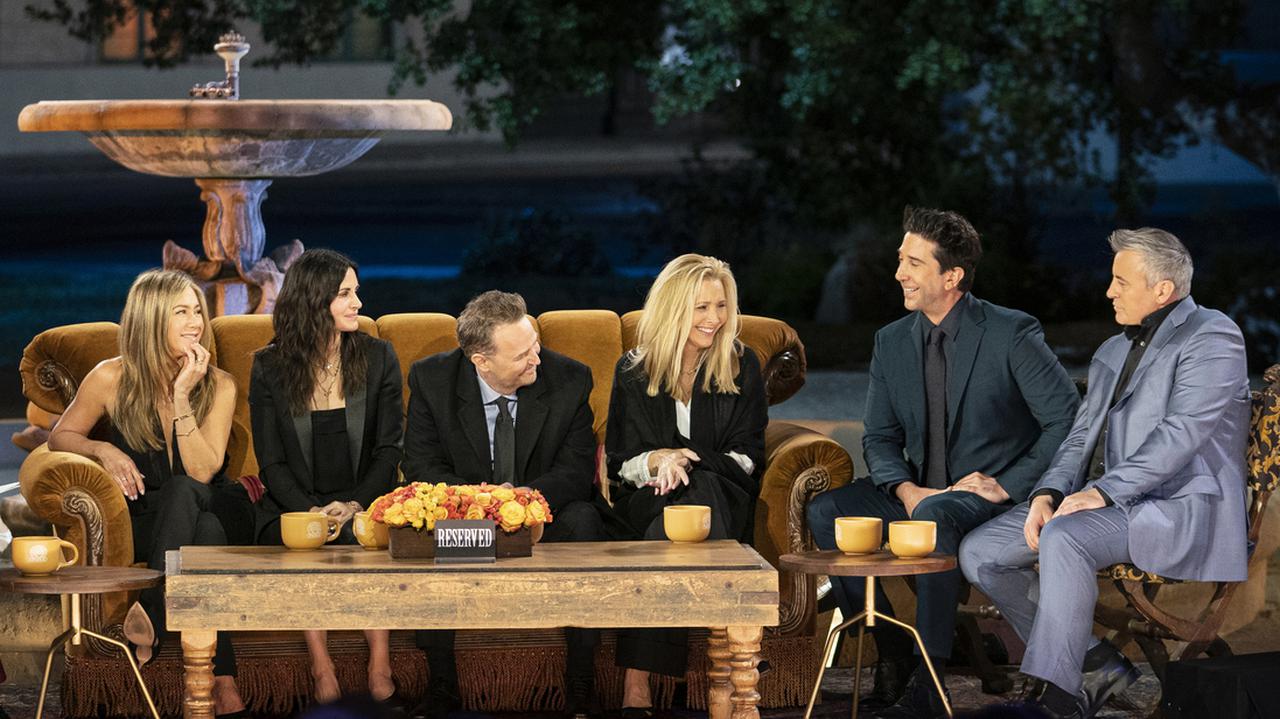 『フレンズ:ザ・リユニオン』は、ジェニファー・アニストン(レイチェル役)、コートニー・コックス(モニカ役)、リサ・クドロー(フィービー役)、マット・ルブラン(ジョーイ)、マシュー・ペリー(チャンドラー役)、デヴィッド・シュワイマー(ロス役)といったお馴染みのキャスト6人全員が勢揃いし、実際に『フレンズ』が撮影されたワーナー・ブラザースのスタジオ「Stage24」で思い出を語り合う特別番組。