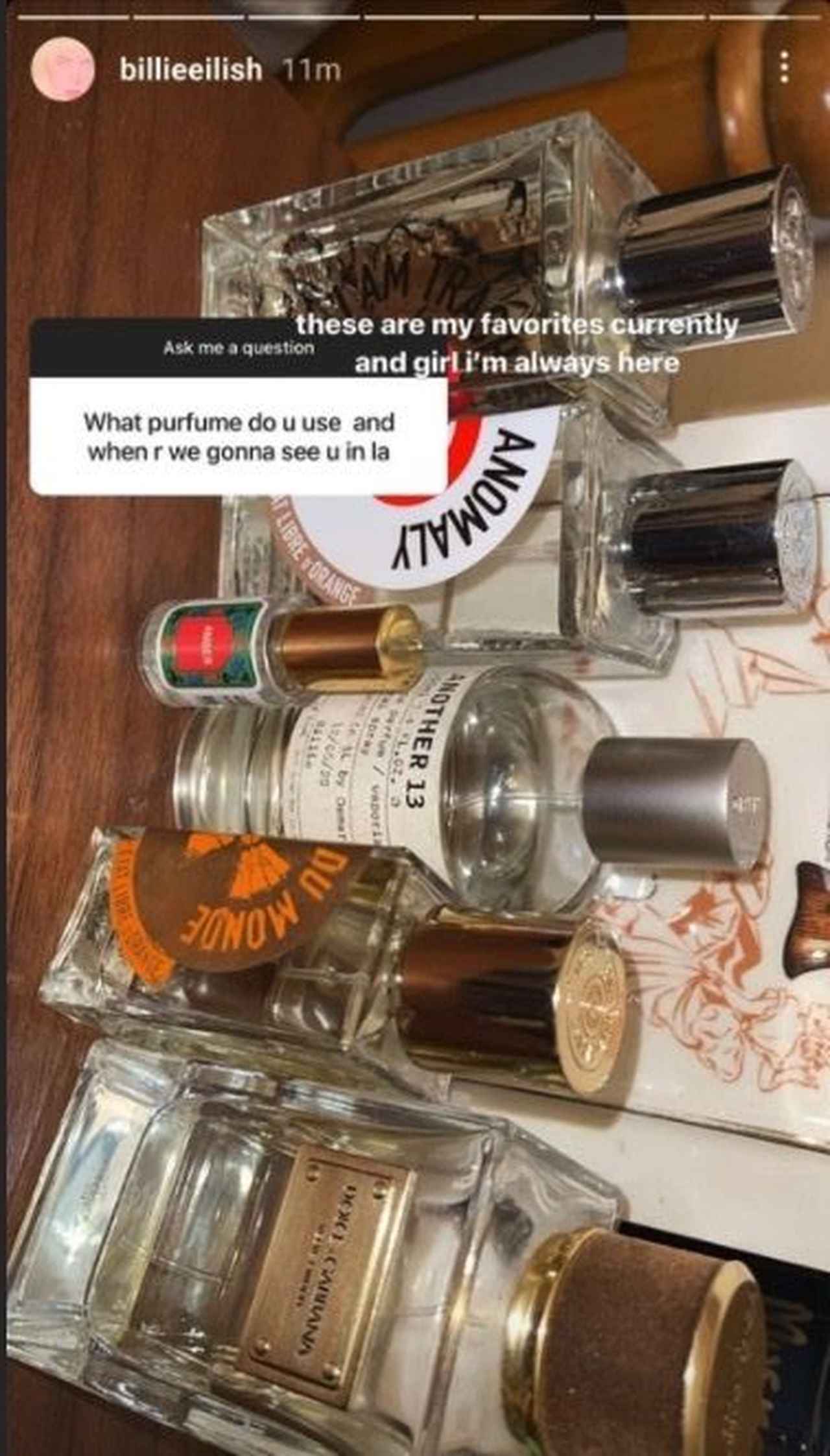 そんなビリーが、先日自身のインスタグラムで質問を募ったところ、ひとりのファンからふだん愛用している香水について聞かれたそう。それに対し、ビリーは「今は、これらがお気に入りかな」と、実際にプライベートで愛用している数種類の香水を写真とともにシェアした。