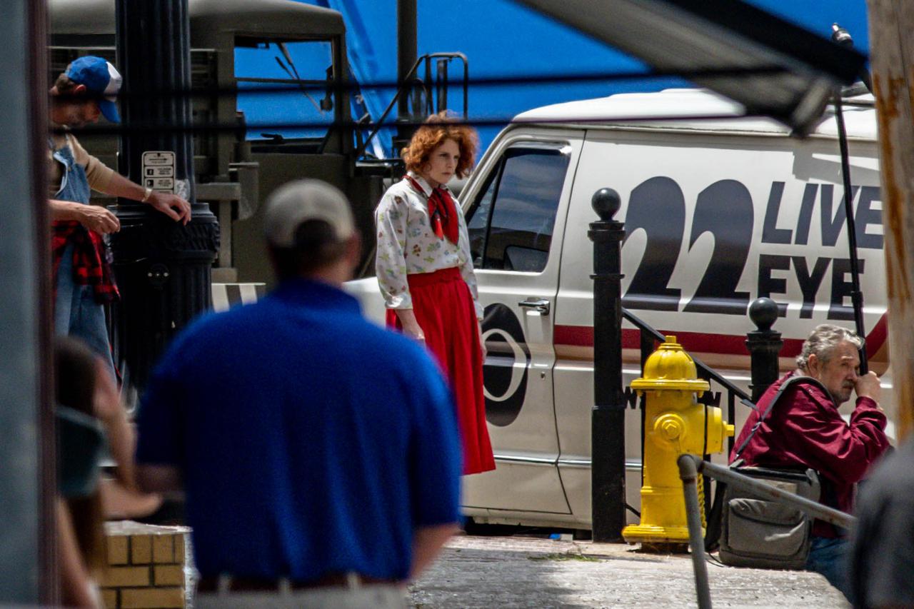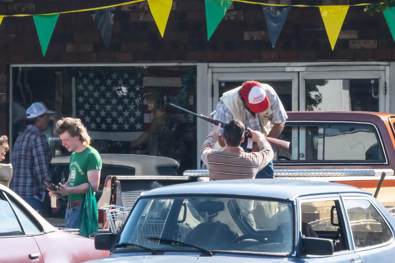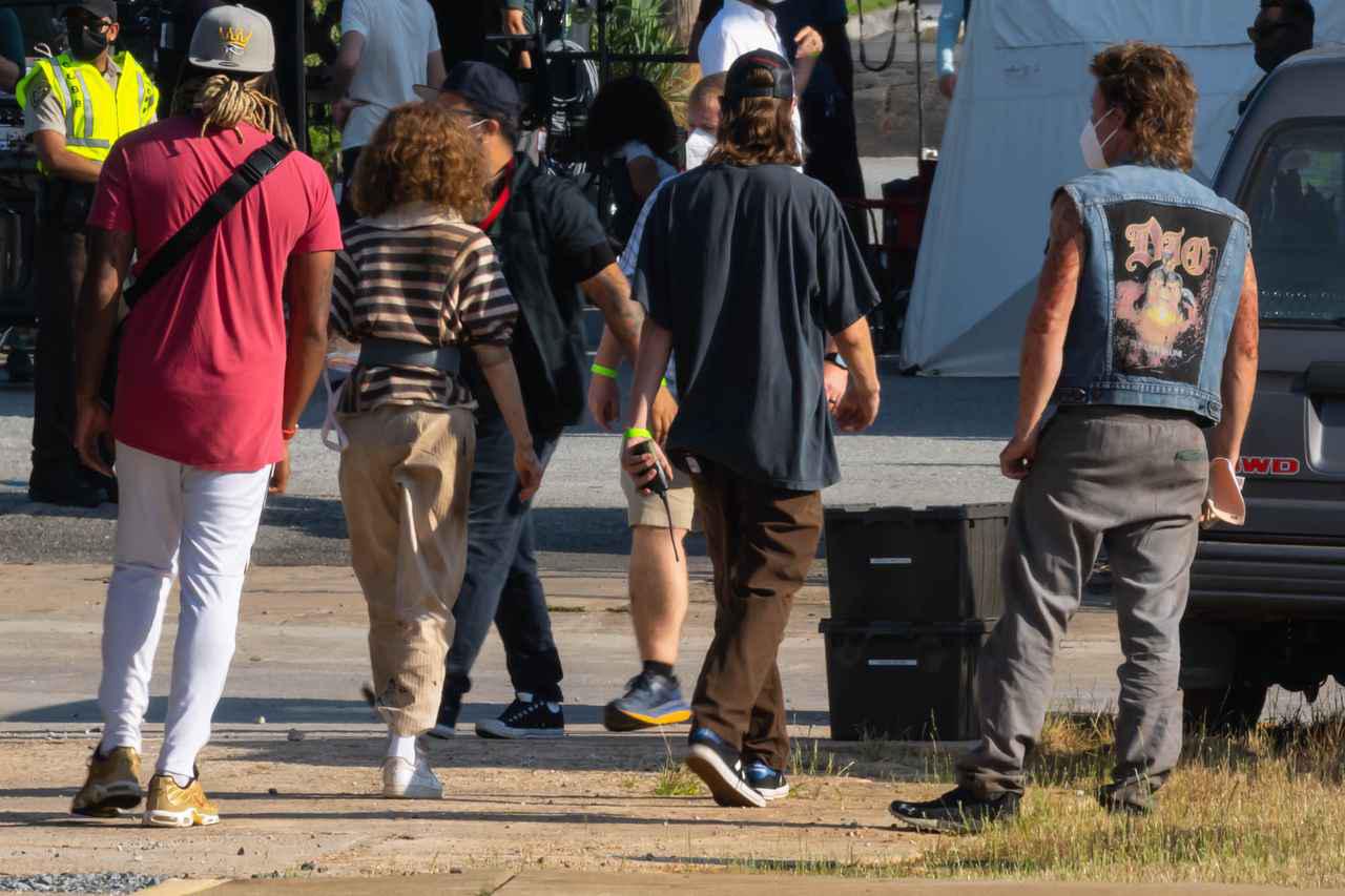 そして、ナタリアが銃を持っていたという目撃情報を裏づけるかのように、現場では拳銃を持つ人々の姿が。この日の撮影には出演者もスタッフも多く参加しており、大規模な撮影だったと見られる。