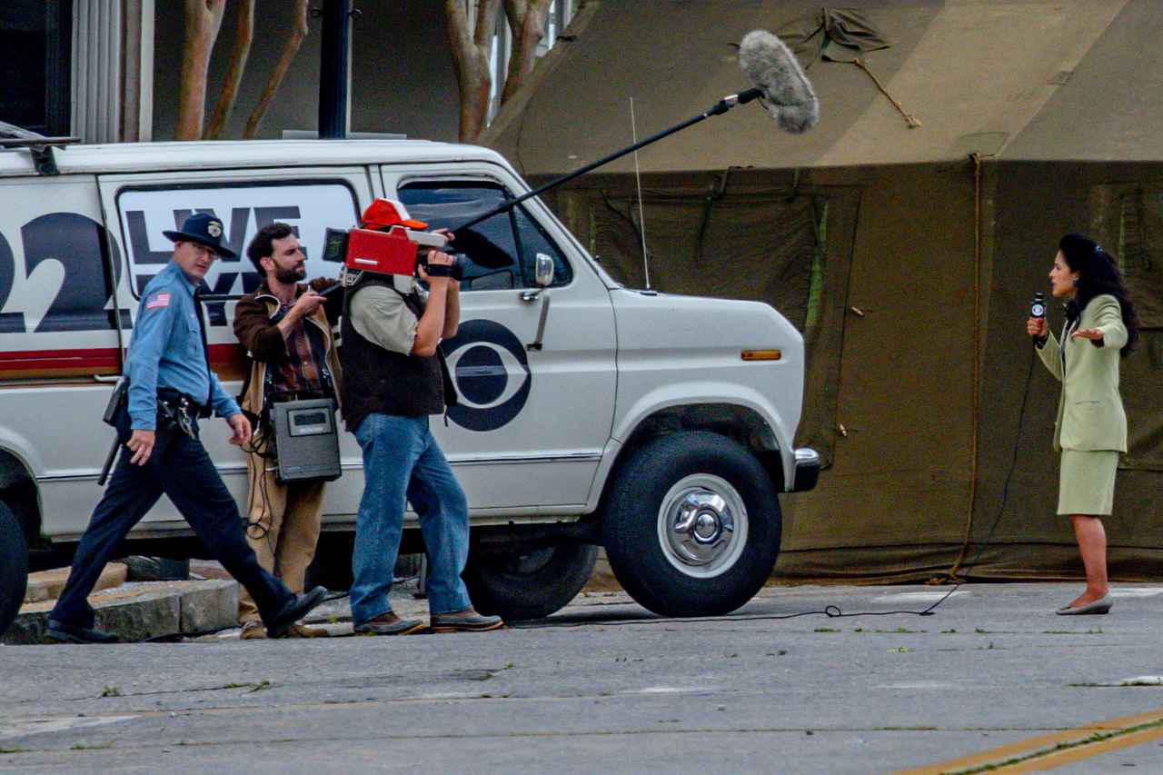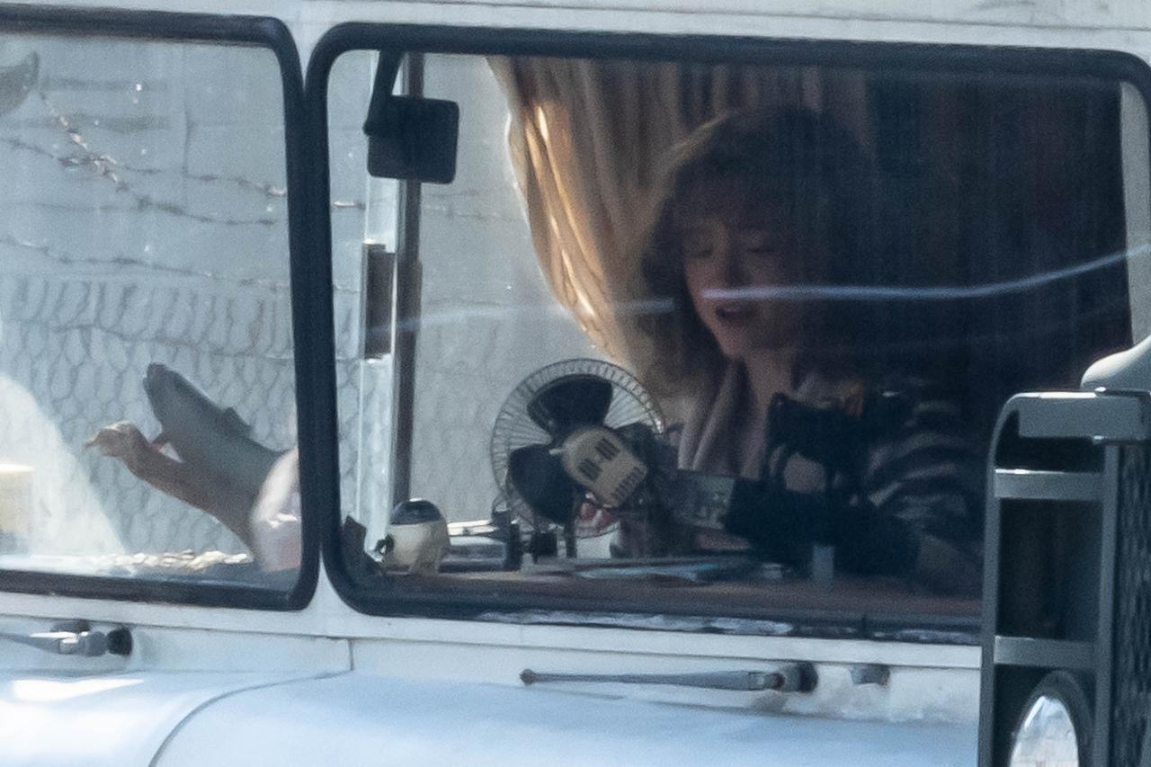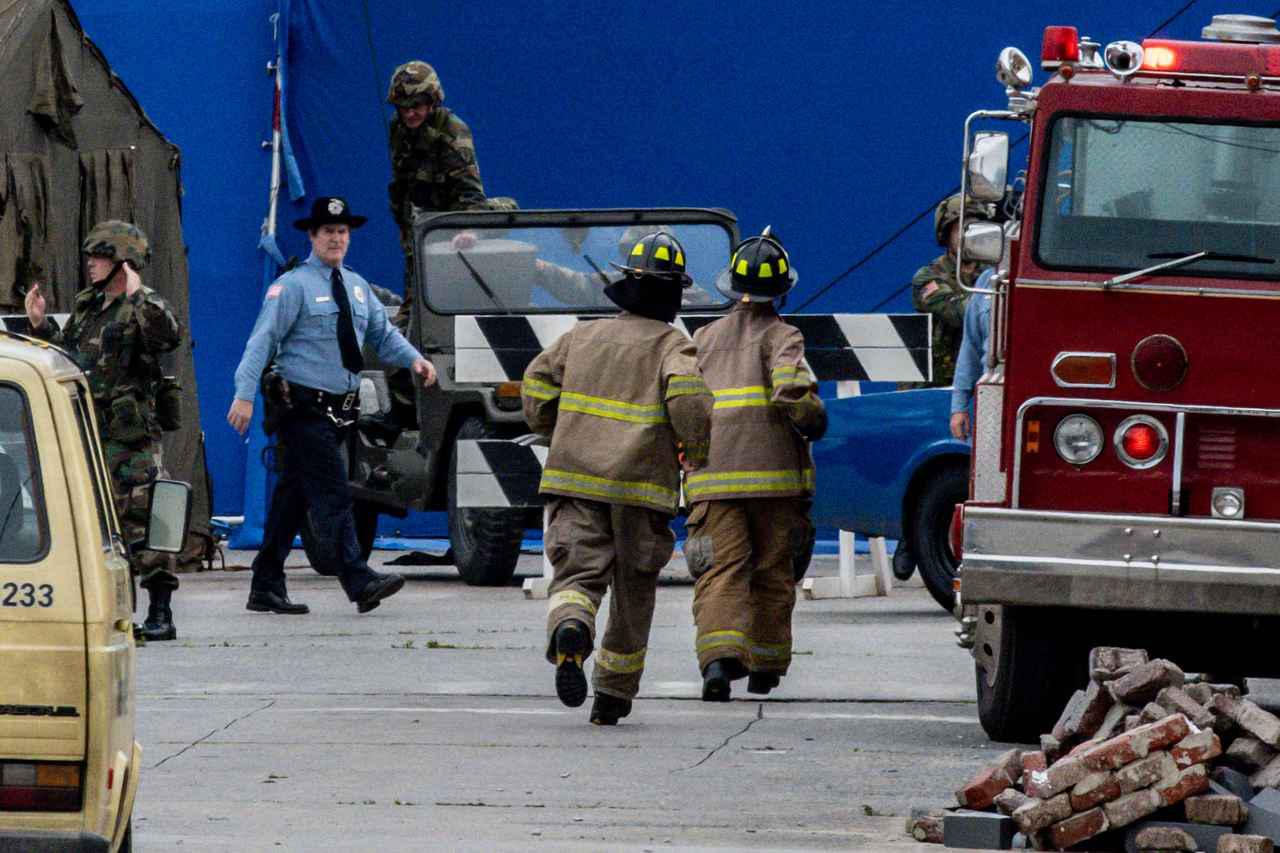 そして、ナタリアが銃を持っていたという目撃情報を裏づけるかのように、現場では拳銃を持つ人々の姿が。この日の撮影には出演者もスタッフも多く参加しており、大規模な撮影だったと見られる。