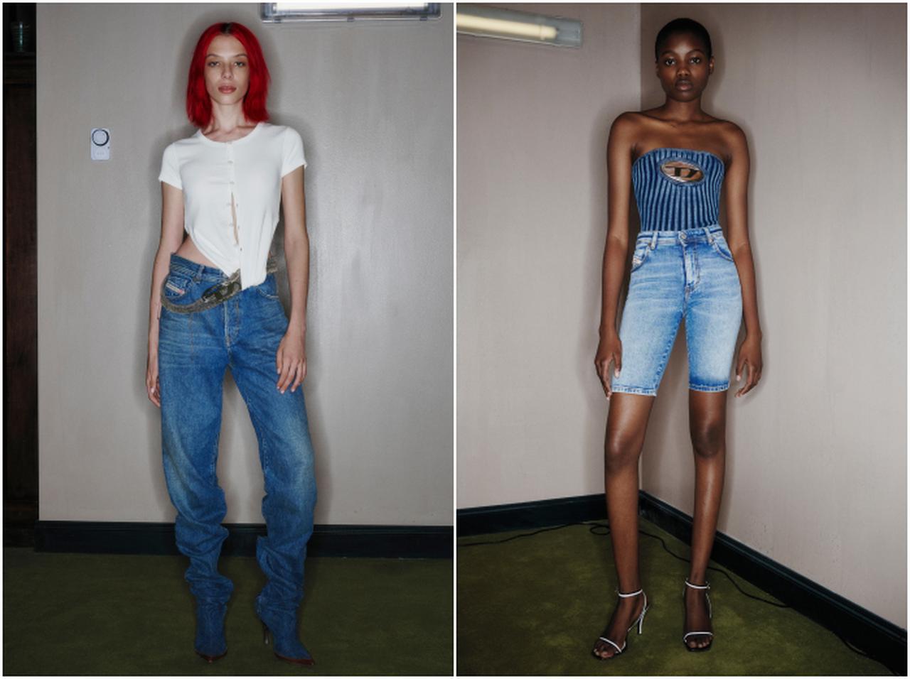 このストーリーの中には、マーティンスの焦点でもあるデニム、ウィメンズウェア、メンズウェア、そして実験主義のすべてが描かれている。マーティンスのコンセプトは、DIESELの大胆でアイロニカルな歴史をコンテンポラリーに解釈すること。とくに、オールジェンダーへのアプローチ、ヘリテージコンポーネント、そして新たにローンチする「DIESEL LIBRARY」が大きな特徴になっている。
