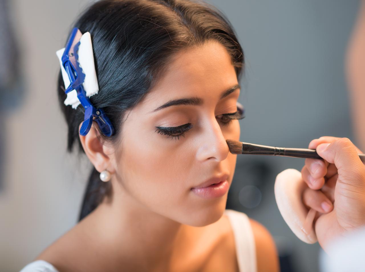 ステップ3:少し時間をおいてパウダーが肌に密着したら、余分な粉だけを落とすためにブラシで軽くはたく。使うブラシは、少し大きめでふわふわのものがよいそう。