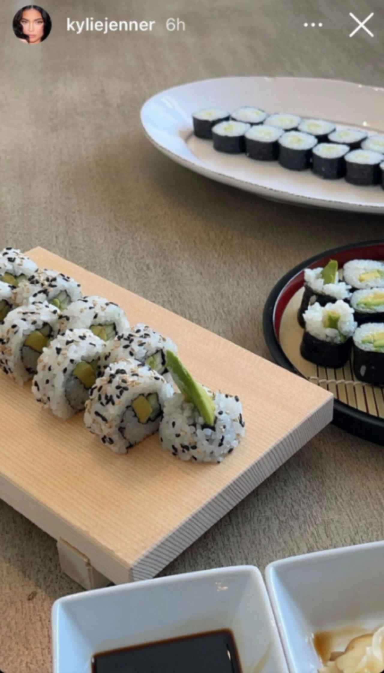 カイリーが公開したのは、具がほぼアボカドしか入っていないこちらの寿司。