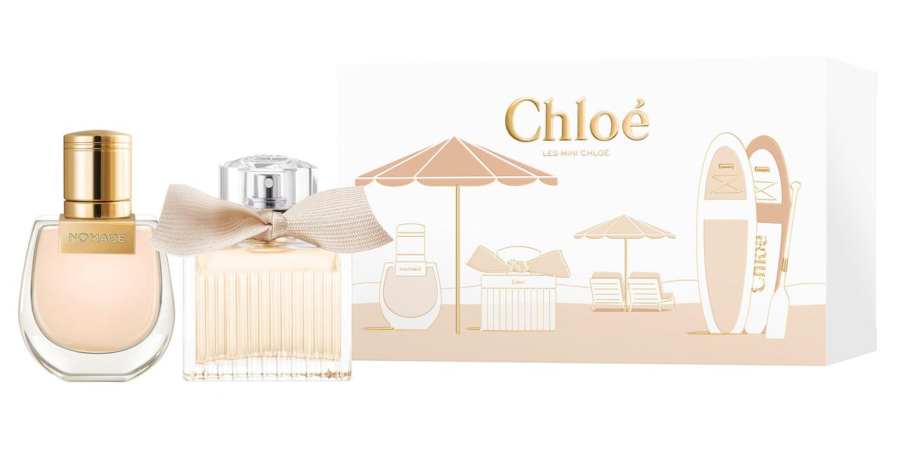 今回登場するのは、快活なピオニーとライチ、驚くほどナチュラルなローズの香りで世界中の人々から愛され続ける「クロエ オードパルファム」と、自由なスピリットを表現し、うっとりさせるほど魅惑的なフローラルシプレーが香る「クロエ ノマド オードパルファム」の2種類のフレグランスを組み合わせた特別セット。