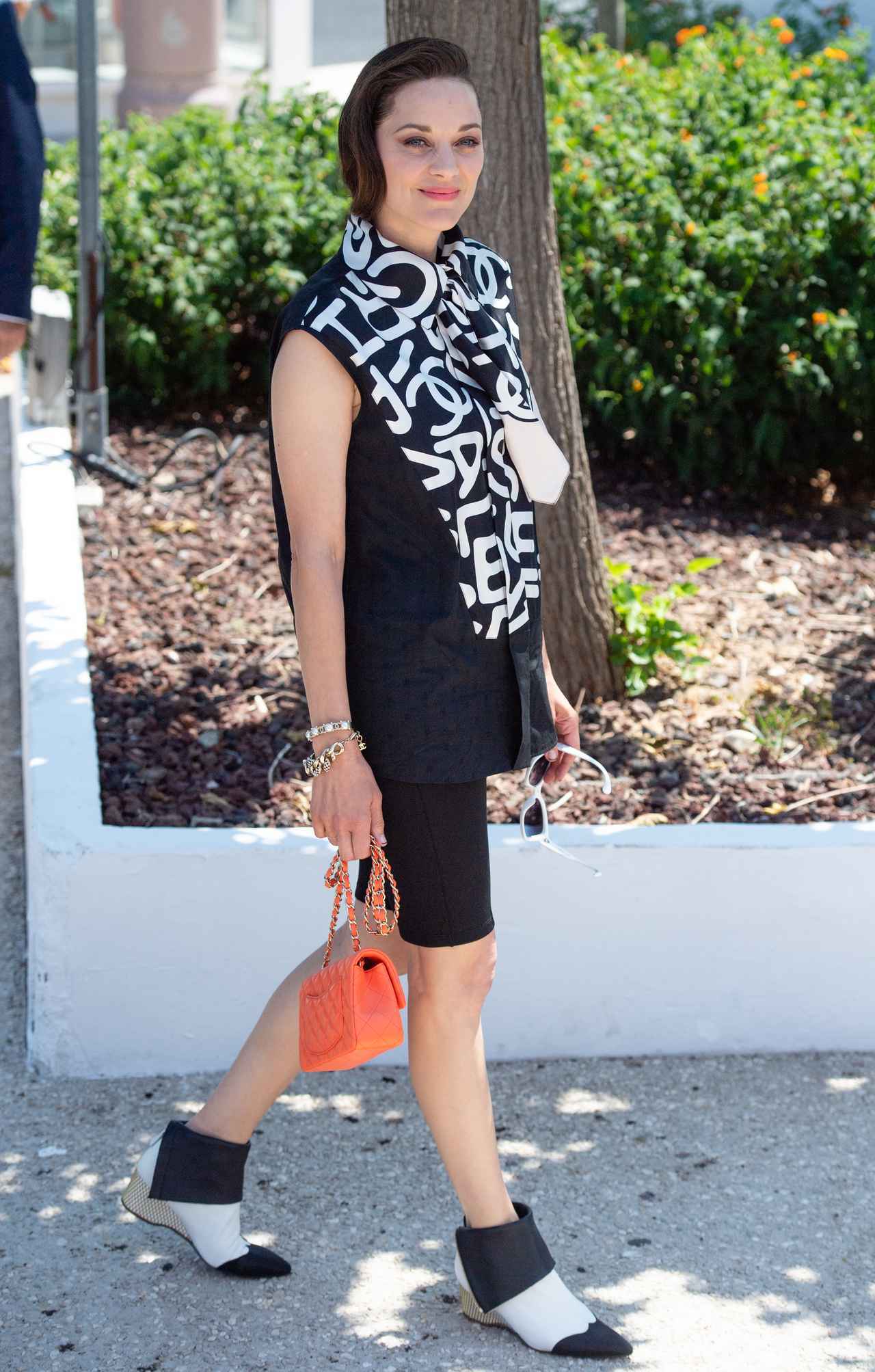 マリオンはカンヌ国際映画祭の初日ということもあり、レッドカーペットではゴージャスにドレスアップ。しかしフォトコールでは一転、かなりカジュアルダウンしており、なんとサイクリングパンツを着用して登場した。
