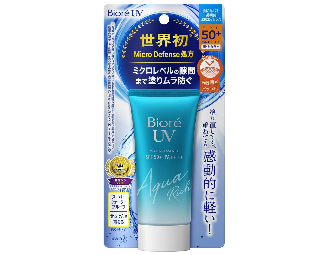 その日焼け止めとは、花王から販売されているスーパーウォータープルーフの日焼け止め「ビオレ UV アクアリッチ ウォータリーエッセンス 」。顔と身体に使えるビオレのこの日焼け止めは日本ではおなじみの人気アイテムだけれど、ここ数年海外でも注目を集めている。