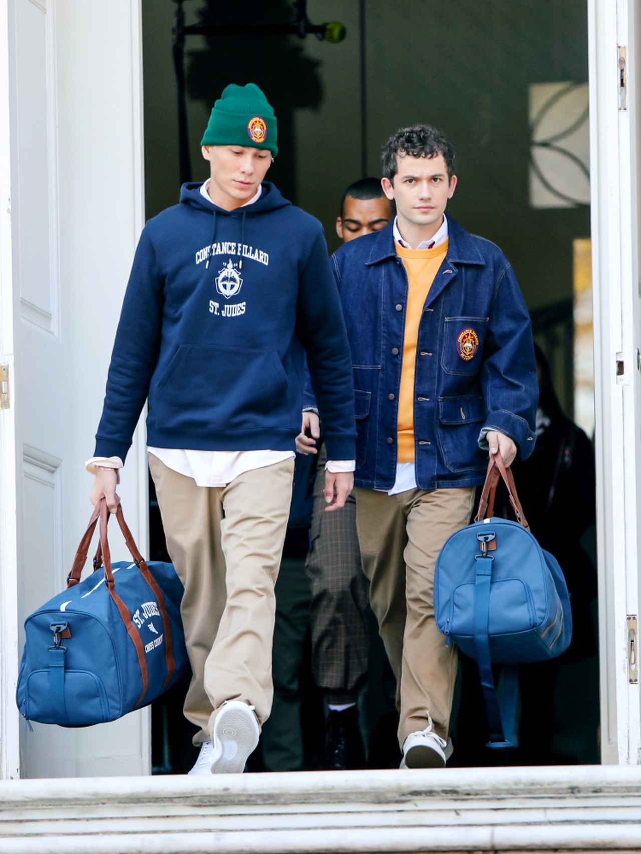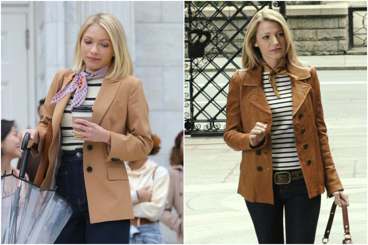 さらに、タヴィ・ゲヴィンソン演じる学園の教師ケイト・ケラーのボーダートップスにキャメルカラーのジャケット、首元にスカーフというコーディネートは、オリジナル版でブレイク・ライブリーが演じたセリーナ・ヴァンダーウッドセンの初登場シーンを意識したものとなっている。