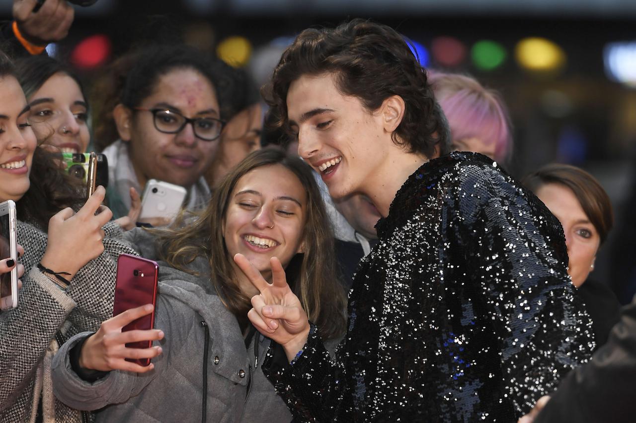 映画『キング』のプレミアでファンと一緒にセルフィーを撮るティモシー・シャラメ。
