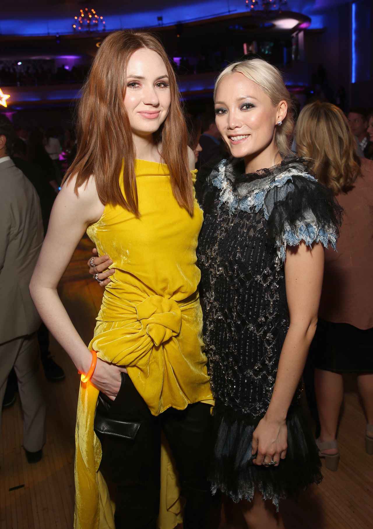 2019年、『ガーディアンズ・オブ・ギャラクシー:リミックス』のワールドプレミアに出席したネビュラ役のカレン・ギラン(左)とマンティス役のポム・クレメンティエフ。