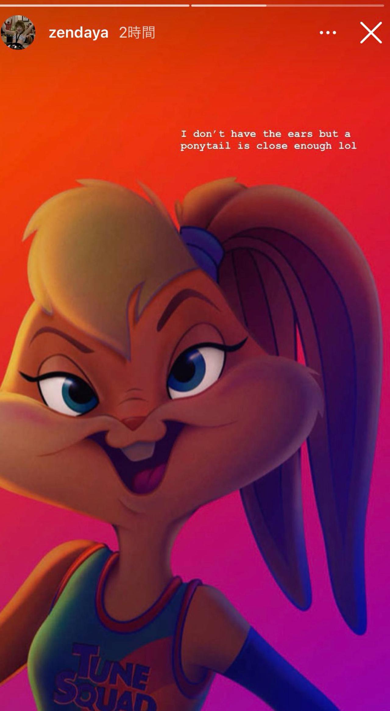 続けて、ローラ・バニーの画像を投稿したゼンデイヤは、「ウサギの耳はないけど、ポニーテールがあれば十分だよね」と冗談交じりに綴った。