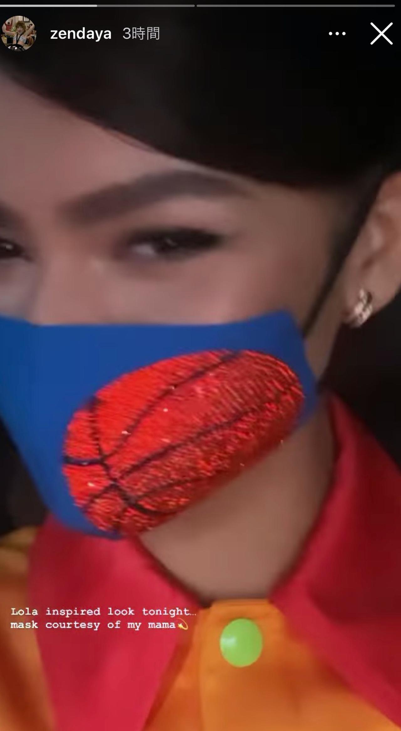 ゼンデイヤは、インスタグラムストーリーズにも衣装を着た映像をアップ。こちらでは、映画のテーマに合わせてバスケットボールがデザインされたマスクも着用しているのだけれど、なんとこのマスクは、自身の母親による手作りのものだそう。