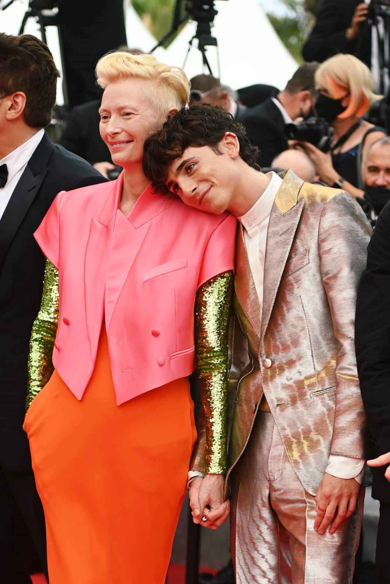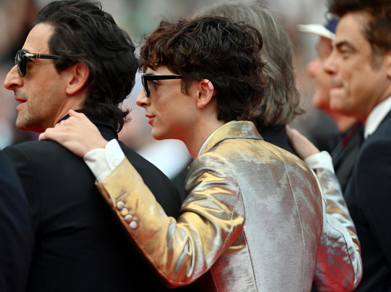 黒や濃紺といった暗い色のタキシードを身につけた男性参加者が溢れるなか、シルバーのトム・フォード(Tom Ford)のスーツをバッチリと着こなして、ひときわ注目を浴びたティモシーは、ティルダ・スウィントン、エイドリアン・ブロディ、ビル・マーレイ、べ二チオ・デル・トロ、オーウェン・ウィルソンといった大先輩たちから息子のように可愛がられる様子が注目を浴びた。