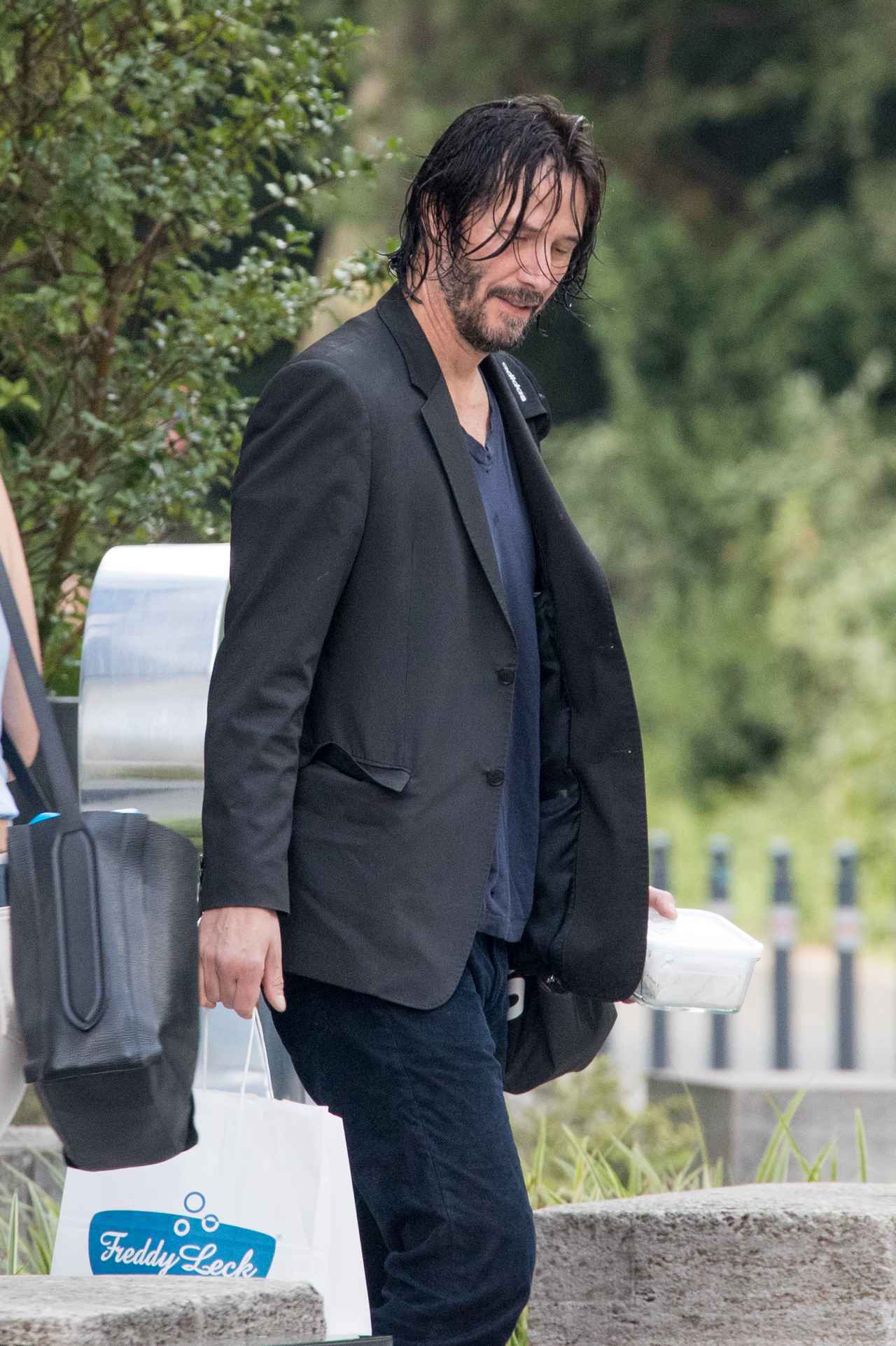 髪が濡れたままホテルを出るキアヌ・リーブス