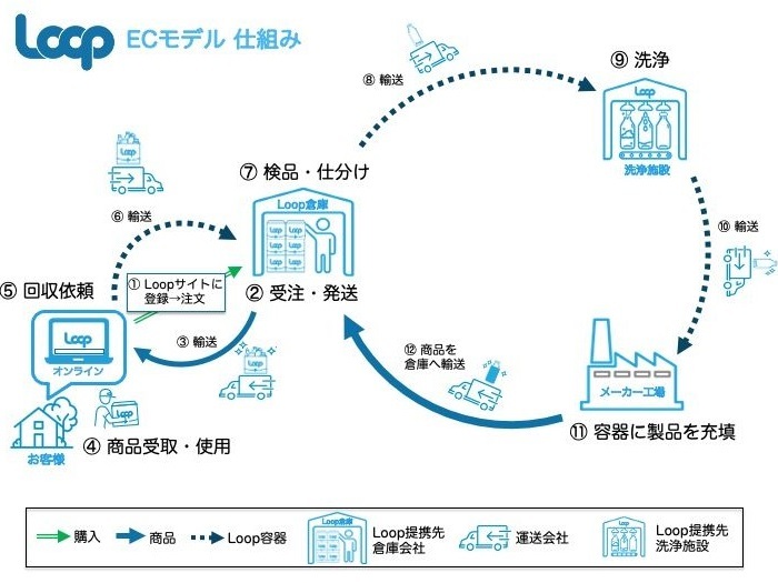 日本で実証実験中のLoopとは、使い終わった容器を返却できて、それが再利用される循環型ショッピングプラットフォームのこと。