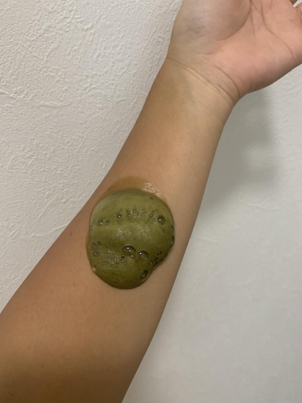 乾いたらそのまま4~8時間ほど放置するようサイトに記載されていたため、どうせならとマックスの8時間放置して、軽めにシャワーオフ。そして気になる仕上がりは、まず第一印象は小麦色になっている!という感想。でも、よく見ると肌の色が緑がかっているような。また、最初にムースをのせた際に写真を撮るためにほんの一瞬そのままにしてしまったからか、真ん中あたりがまだらになっていることも気になった。もしかしたら失敗したかも、という不安な気持ちが襲う。
