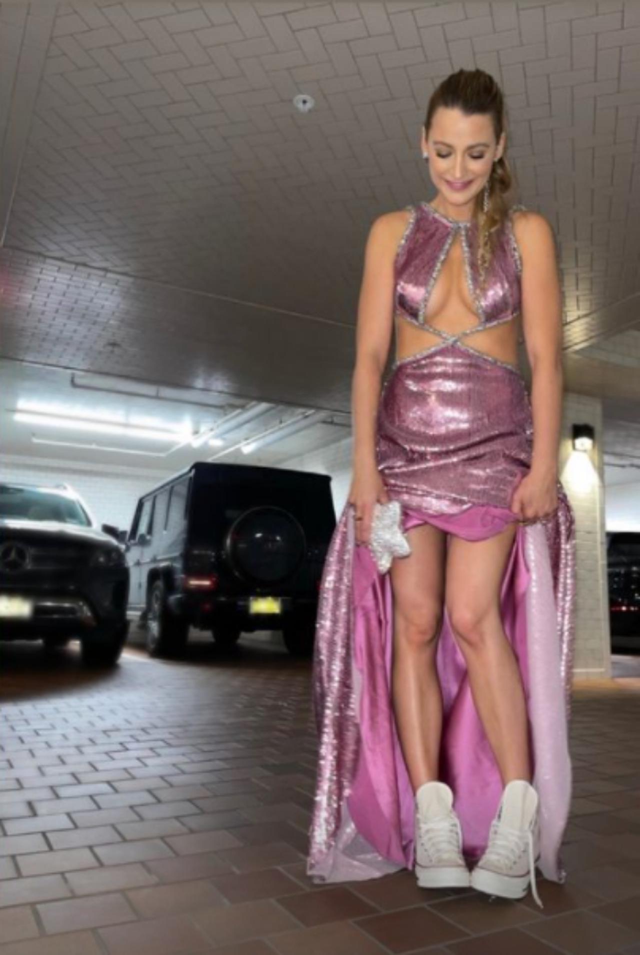 ブレイクがインスタグラムストーリーズで公開した、会場の駐車場でライアンに撮影してもらったと思われる1枚では、ドレスの裾をたくしあげ、スニーカーを見せるブレイクのお茶目な姿が。