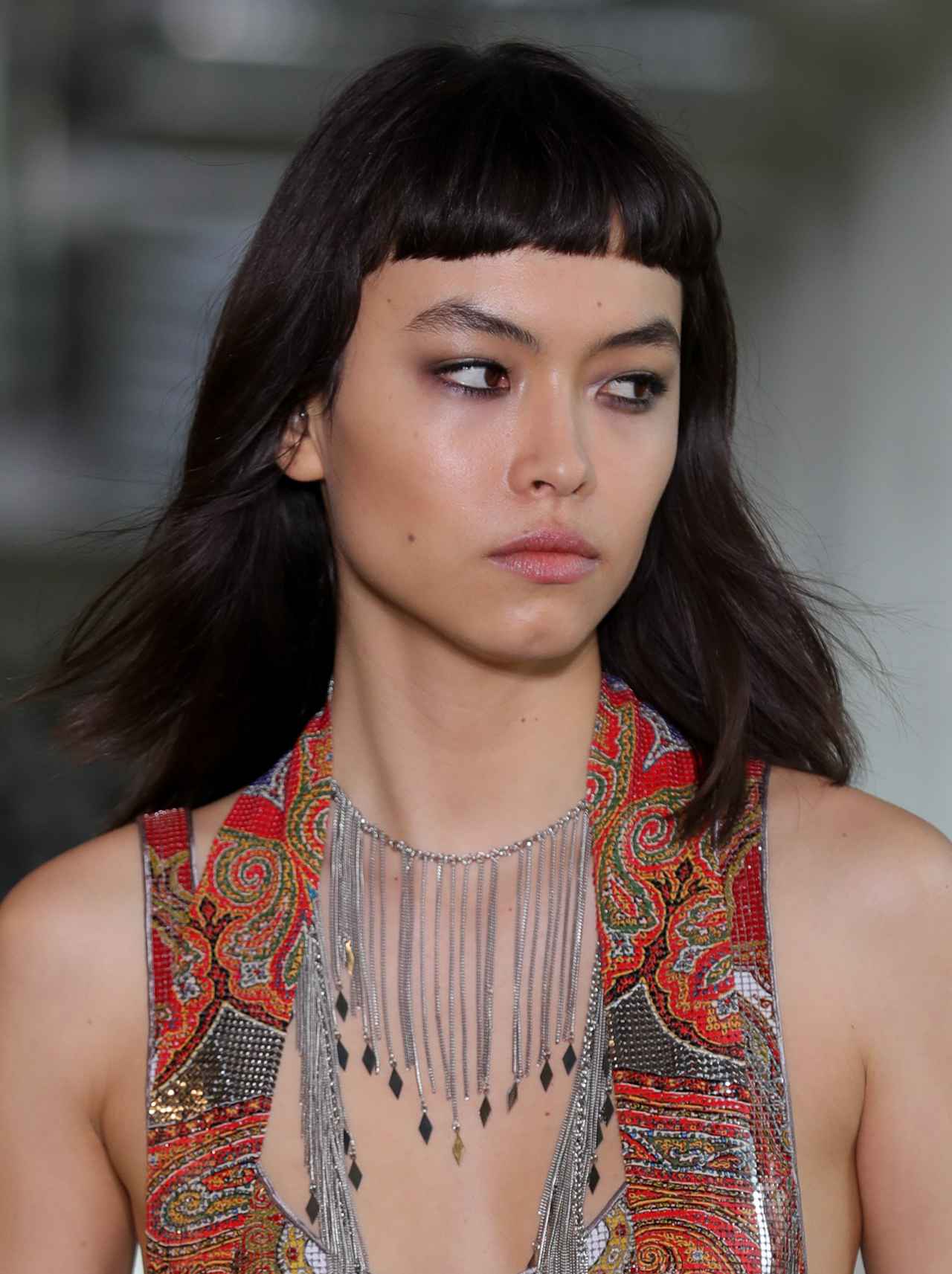 眉毛がしっかり見えるほど短くカットされたオン眉バングは、最新のファッションウィークでも多くのブランドのランウェイで見られていて、ヘアのプロもトレンド入りを予想。オン眉バングの中でも、まっすぐ切りそろえたようなぱっつん前髪が人気を集めるそう。