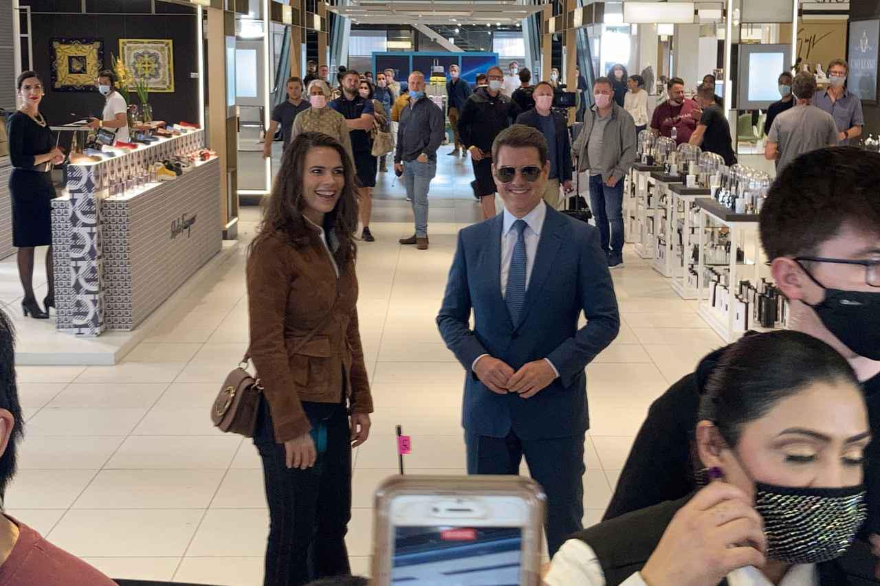 英バーミンガムにあるグランドセントラルで『ミッション:インポッシブル』最新作を撮影中のトム・クルーズと共演者のヘイリー・アトウェル。