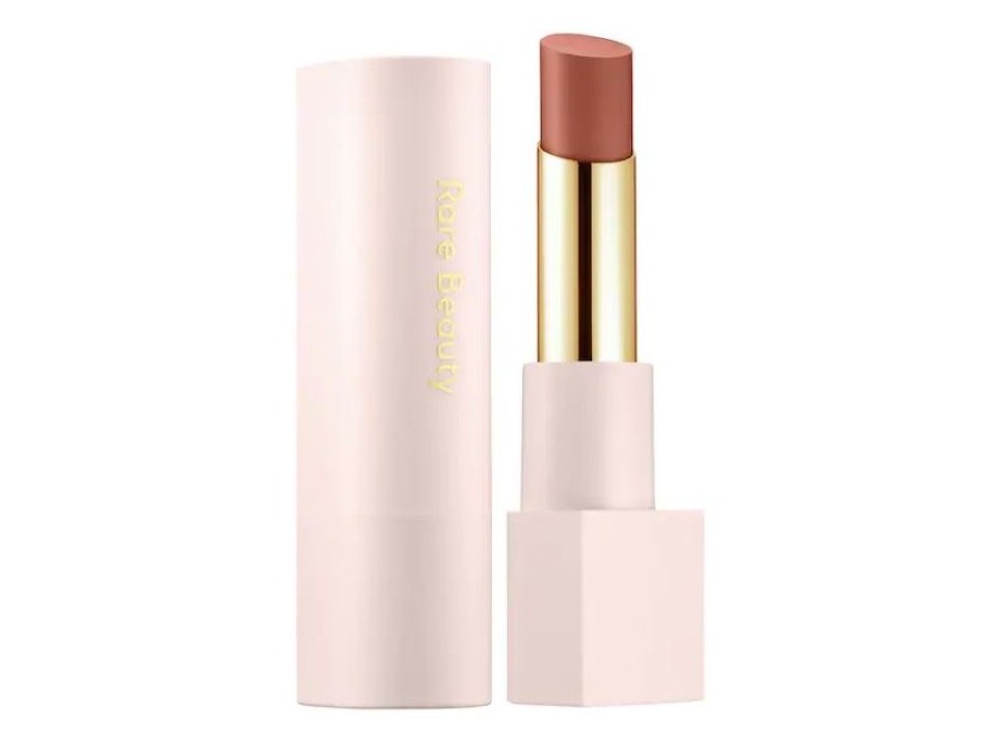 リップについては、マスクの着用を考慮したシンプルで保湿力抜群の「色付きリップバーム」を選択。とくに最近は、シンガーのセレーナ・ゴメスが手掛けるコスメブランド、レア・ビューティー(Rare Beauty)の「ウィズ グラティチュード デューイ リップバーム(色:Thankful)」がお気に入りだという。