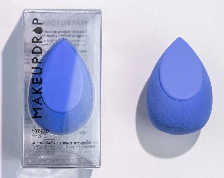 「ハイブリッド」は、シリコン素材のスポンジで知られるブランドのメイクアップドロップ(Makeupdrop)から販売されている雫型のスポンジで、大部分がスポンジでできていて、一か所だけが平らなシリコンになっている。