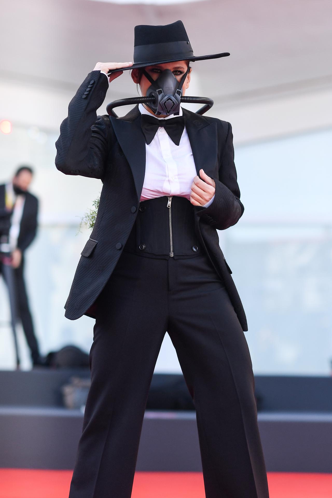 そんな映画『Madres Paralelas』上映会のレッドカーペットに、1人のゲストがなんとも目をひくマスクで現れた。