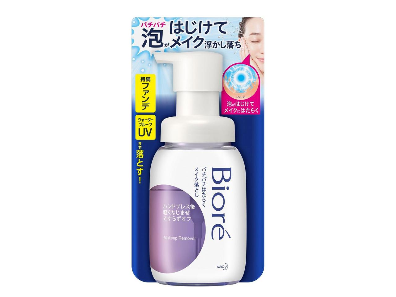 そこで、ビオレから誕生したのは「ビオレ パチパチはたらくメイク落とし」。泡がはじける力を洗浄力に活用することで、持続ファンデやウォータープルーフUVなどの落としづらいメイクまでも、“まさつレス”に手早く落とすことを可能に。