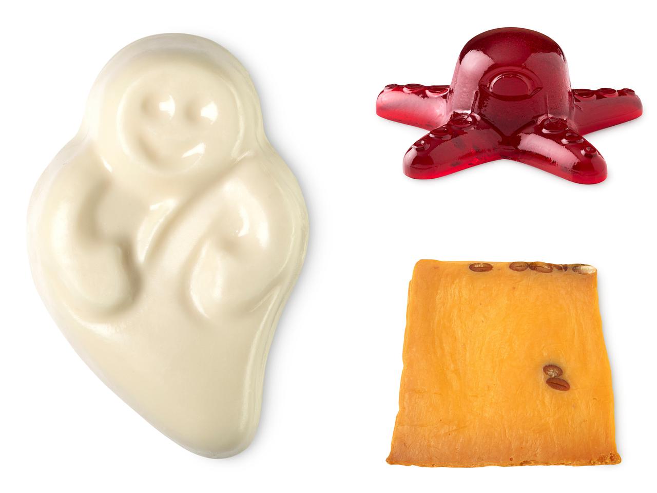 左から、ゴースト イン ザ ダーク ソープ(ソープ)920円 (税込)/ 100g、モンスターオクトパス(シャワージェリー)1,300円 (税込)/ 185g、スパイシー パイ(ソープ)900 (税込)円/ 100g