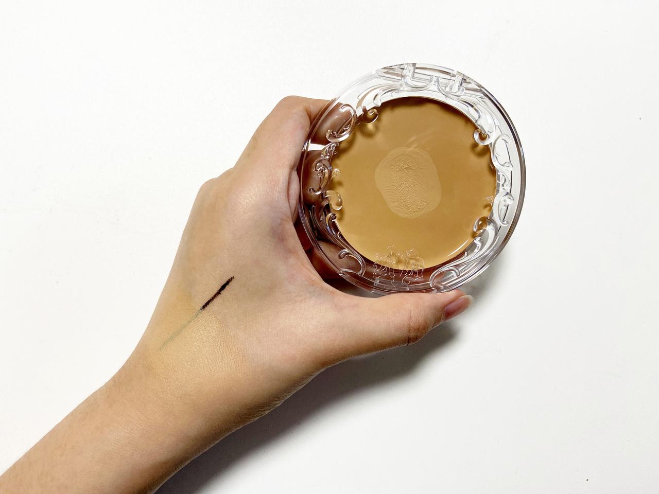 実際に肌にのせてみた感触は、すごく伸びが良い。クリームファンデーションのような濃厚なテクスチャーでありながら、肌になじませているうちにマットな質感に変化。油分の多いファンデーション特有の重さやベタつきもなく、サラっと自然な仕上がりにビックリ。海外の口コミ通り、これならマスクでもメイク崩れがないのかも…?と期待が高まる。