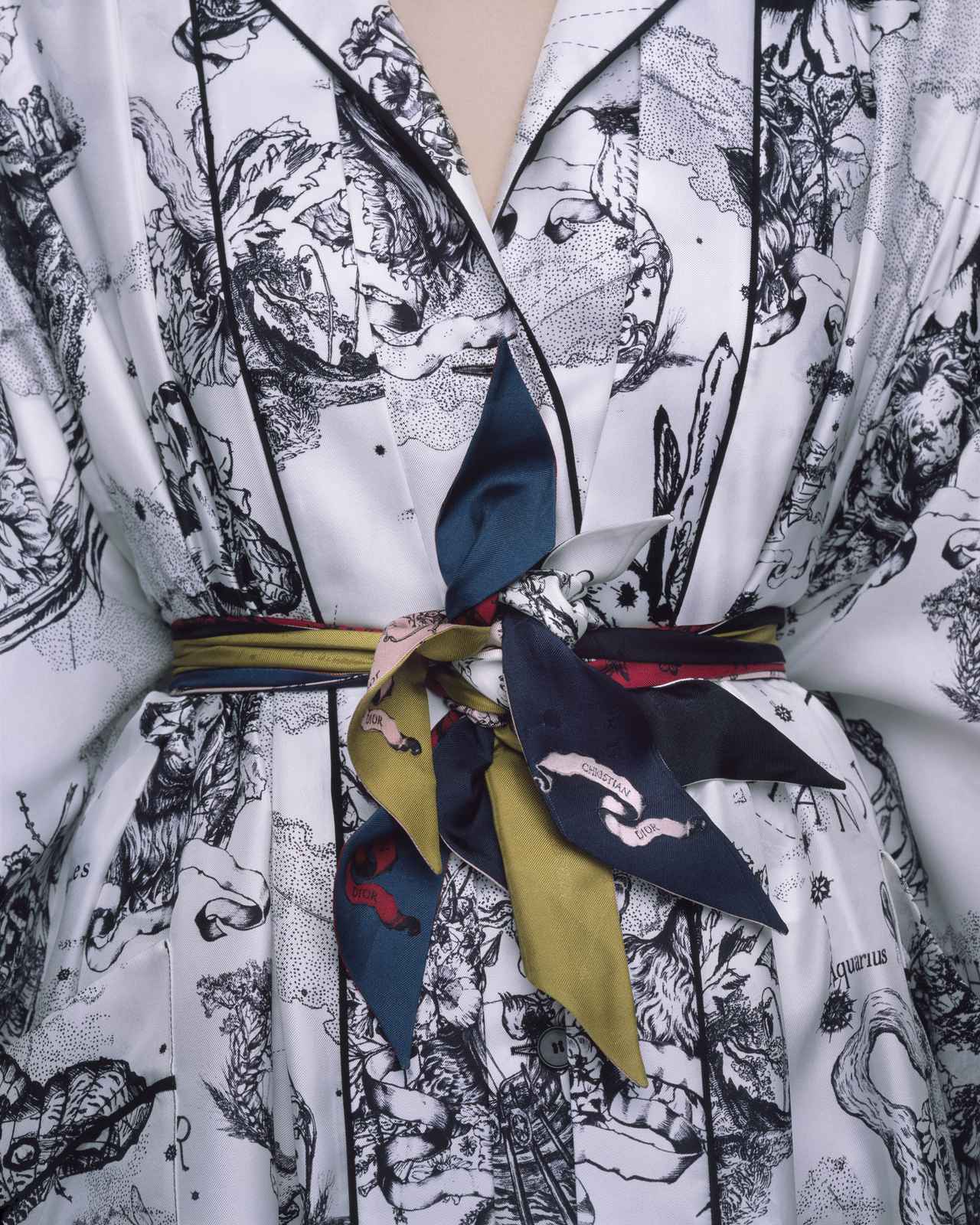 卓越したサヴォワールフェールを体現するこのスカーフは、上質なシルクツイルを使用。糸密度が高いブラジリアンシルクが、並外れたボリューム感と光沢感で魅せる。クリスチャン・ディオールは自著『ファッション小辞典』でこう綴っている。「ネクタイが男性のものであるように、スカーフは女性のものです。そして、どう結ぶかは女性の個性を表します」。