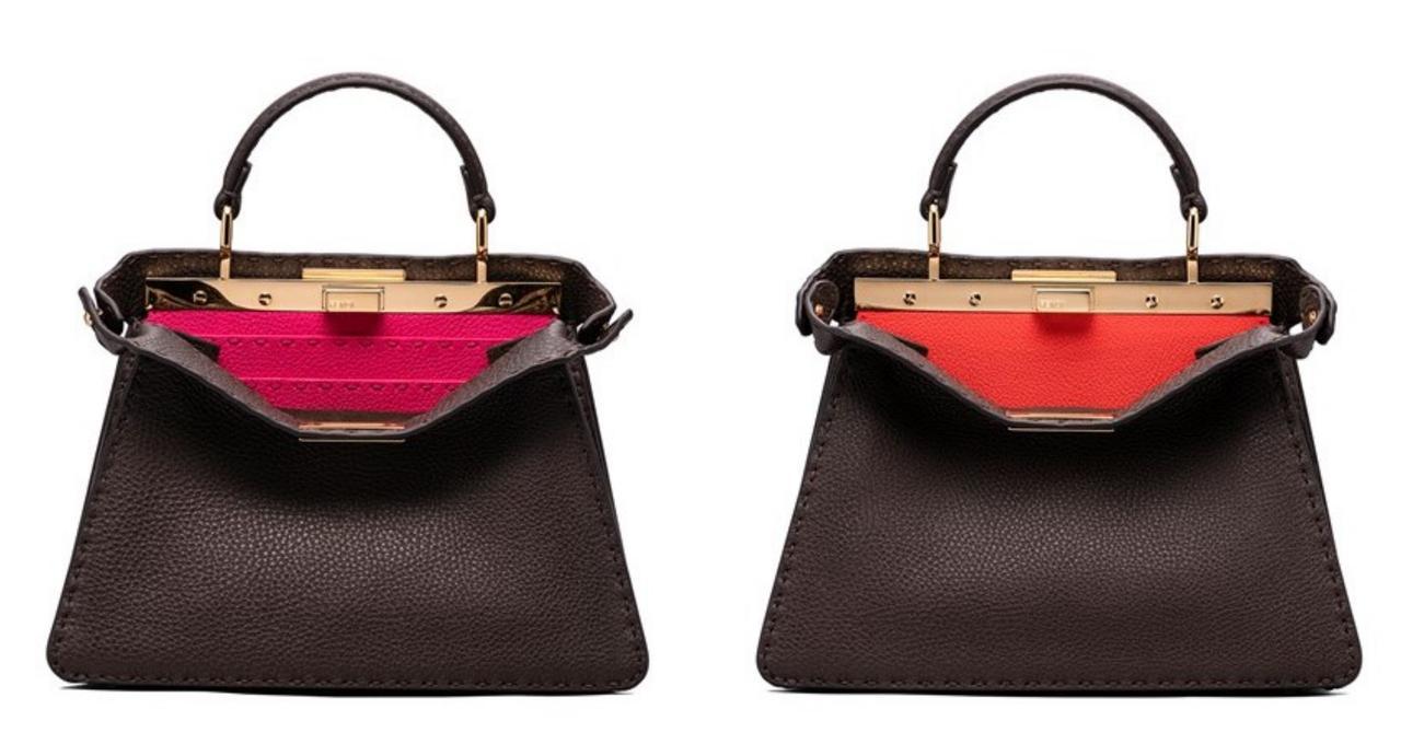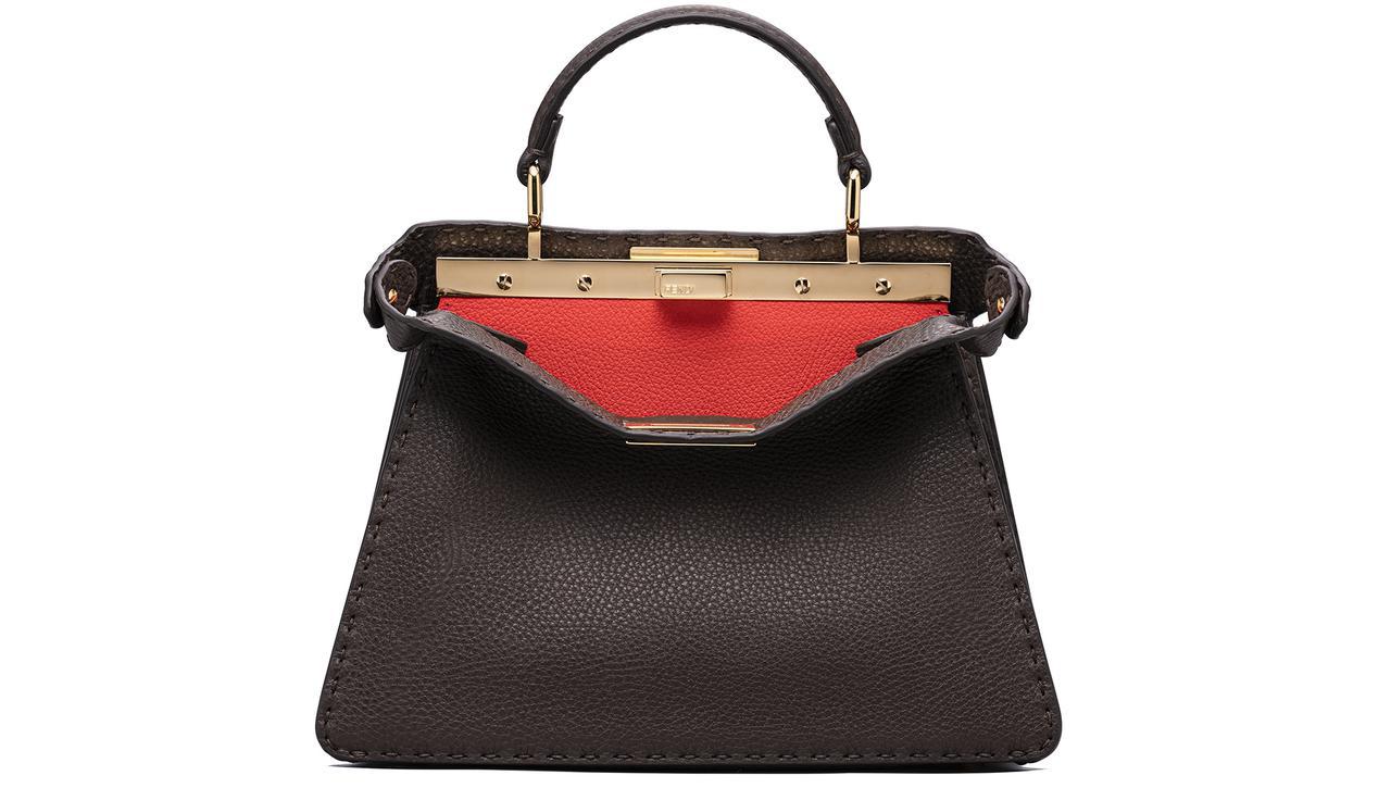 フェンディ家3代目のアーティスティック ディレクター シルヴィア・フェンディによってデザインされた「ピーカブー」。この名前は英語で「いない、いない、ばあ!」を意味するもので、その名の通りバッグの口を開けると覗き、ライニングの遊び心あふれるデザインで人気を集めている。