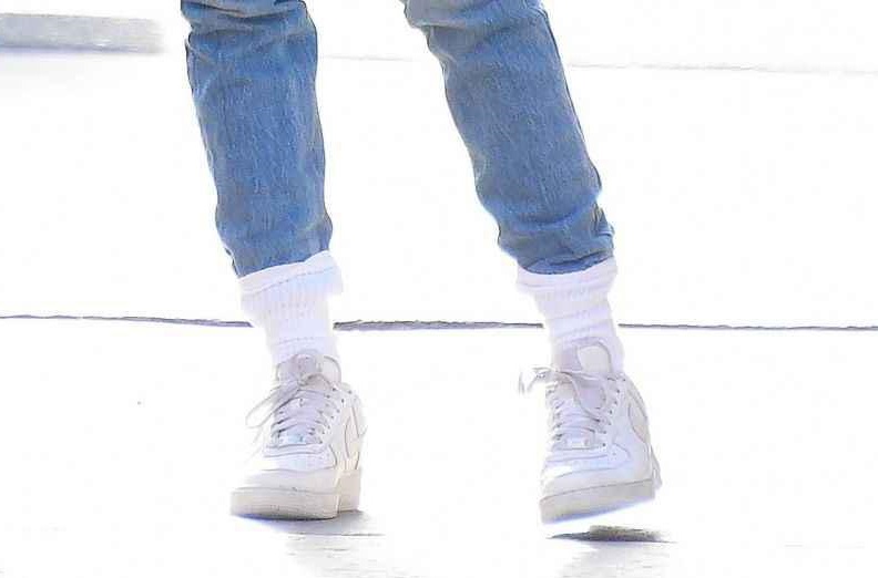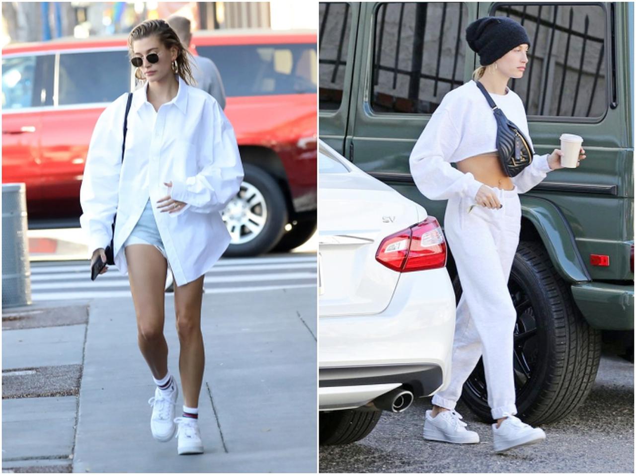 「エアフォース1」をこよなく愛することでも知られるトップモデルの ヘイリー・ビーバーは、オーバーサイズのシャツにショーパンを合わせたストリートルックの足元に「エアフォース1」で爽やかに仕上げて。ボーダーラインのソックスを見せるテクは昨年から引き続き人気のスタイル。