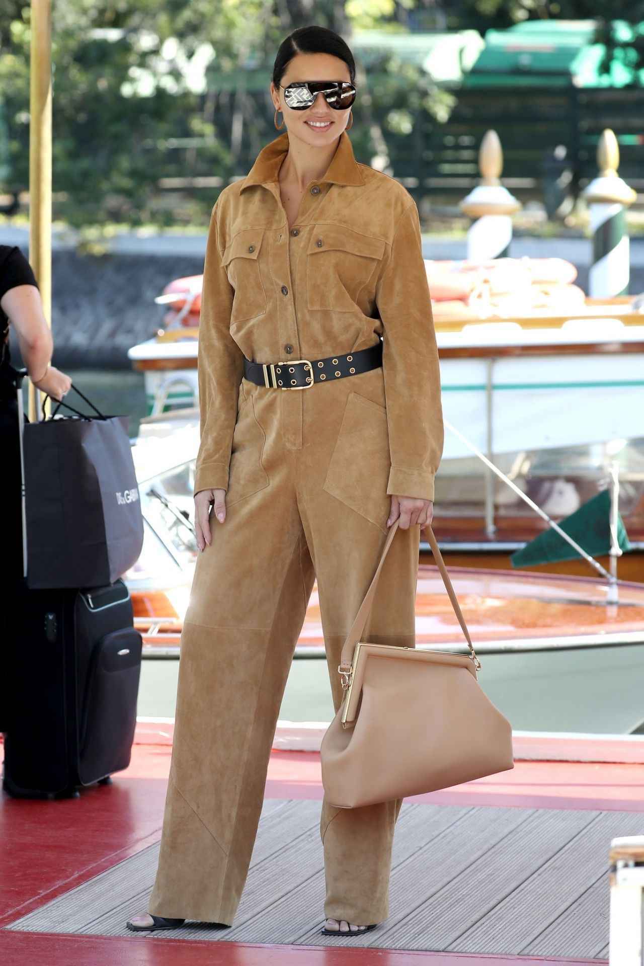 人気モデルのアドリアナ・リマは、人気が続くジャンプスーツに「フェンディ ファースト」のベージュカラーを合わせた秋らしいカラーコーデ。サングラスもフェンディで揃えて。「フェンディ ファースト」のミディアムサイズは、タブレットも綺麗に入る収納力!