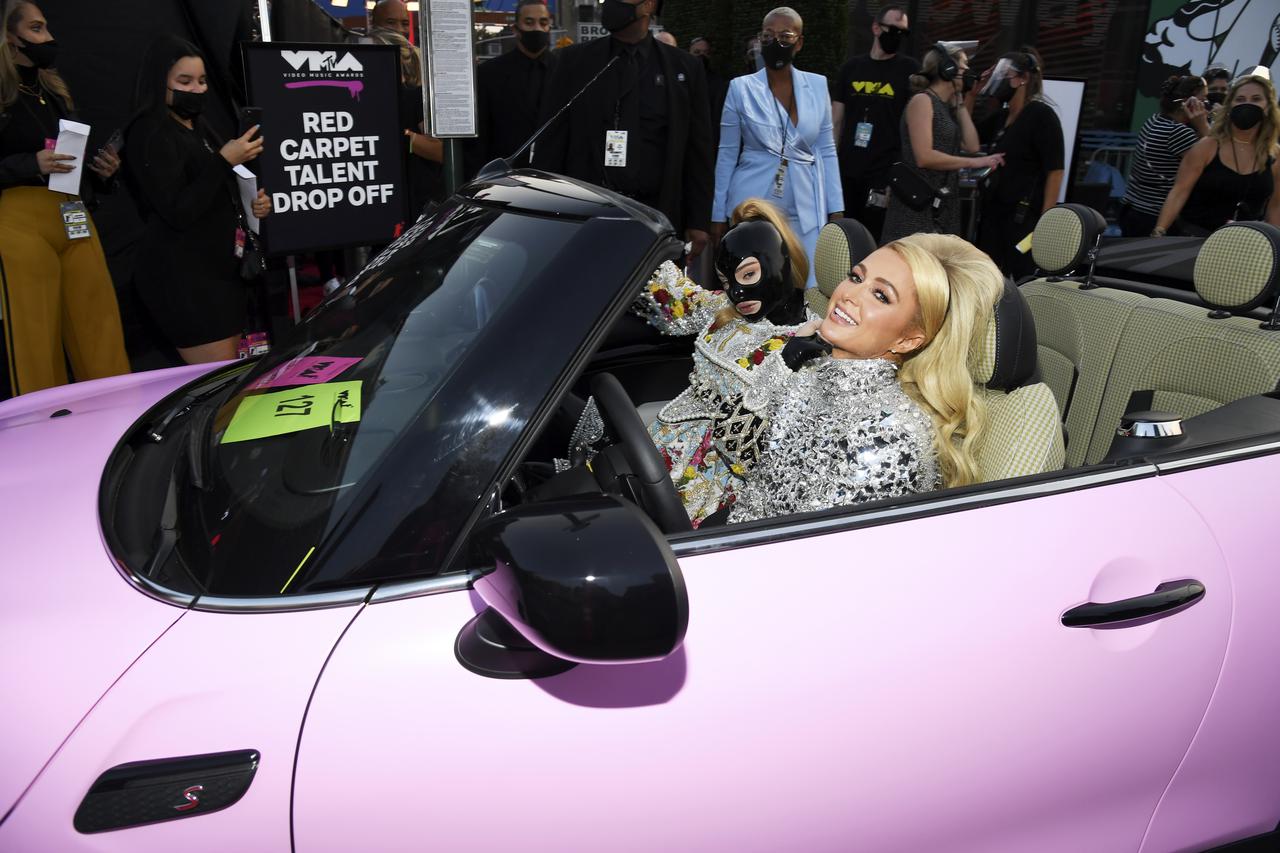 そして、この日は特別ゲストとして、なんと“元祖お騒がせセレブ”として知られる実業家でDJのパリス・ヒルトン(40)がキムの“運転手”としてレッドカーペットに同伴。自身が運転するド派手なピンクのミニの助手席にキムを乗せ、レッドカーペットに送り届けた。
