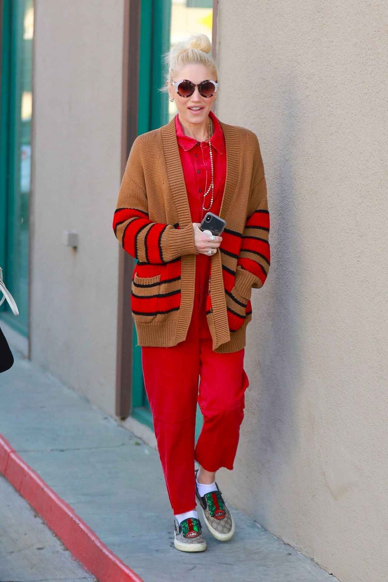 ポップなスタイリングが得意なグウェン・ステファニーは、One Teaspoon(ワンティースプーン)のジャンプスーツの上から、赤とブラウンのストライプがスタイリッシュなN°21 (ヌメロ ヴェントゥーノ)のニットカーデをレイヤード。今季は思いっきり鮮やかなカラーをセレクトして。足元はGucci(グッチ)のローファーでプレイフルに。