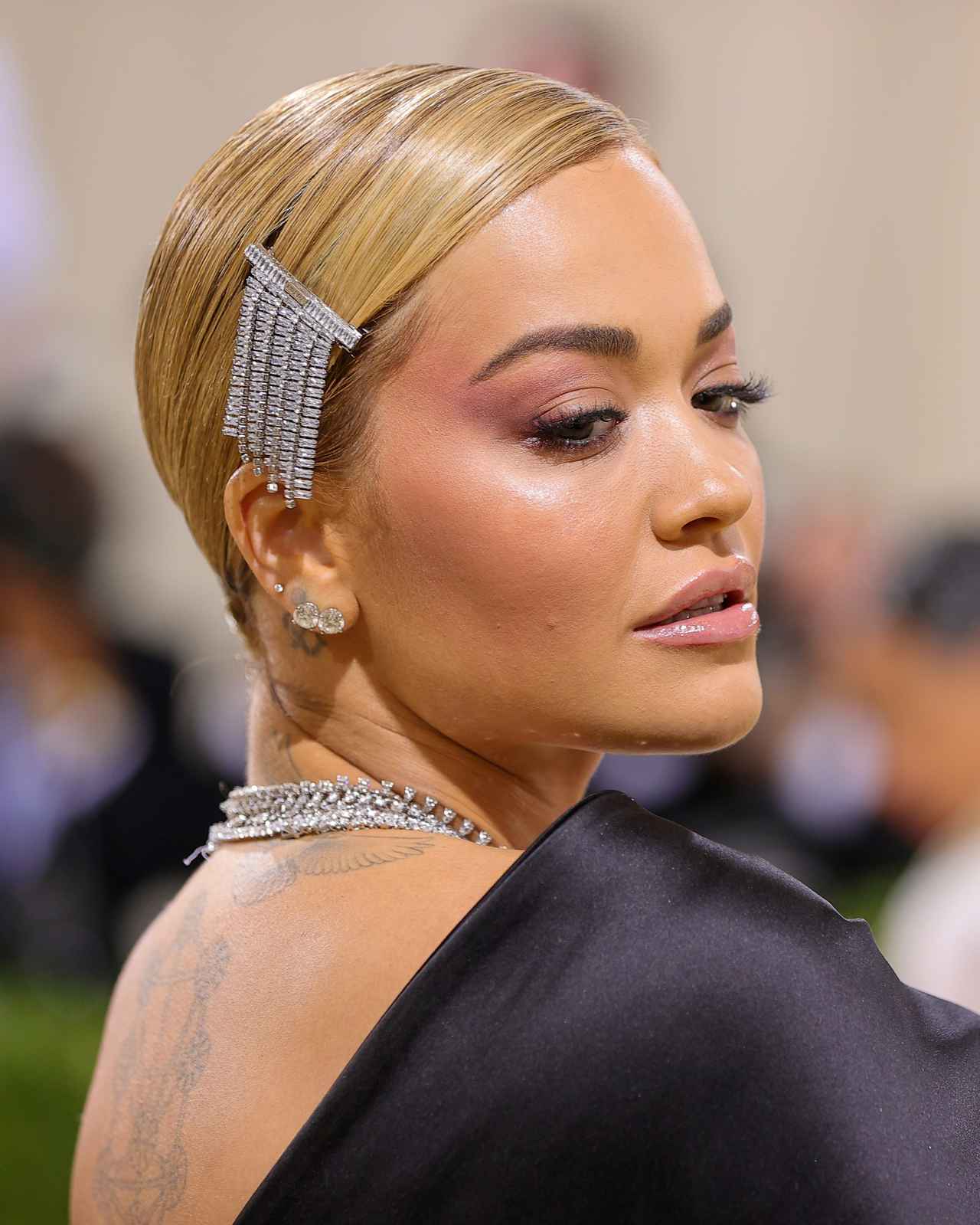 映画監督兼俳優のタイカ・ワイティティと今回のメットガラで“カップルデビュー”を果たしたシンガーのリタ・オラは、前髪を斜めに流した上品なお団子ヘアに無数のクリスタルが輝くヘアクリップをぱちり。シンプルでありながらも存在感のある装いに。