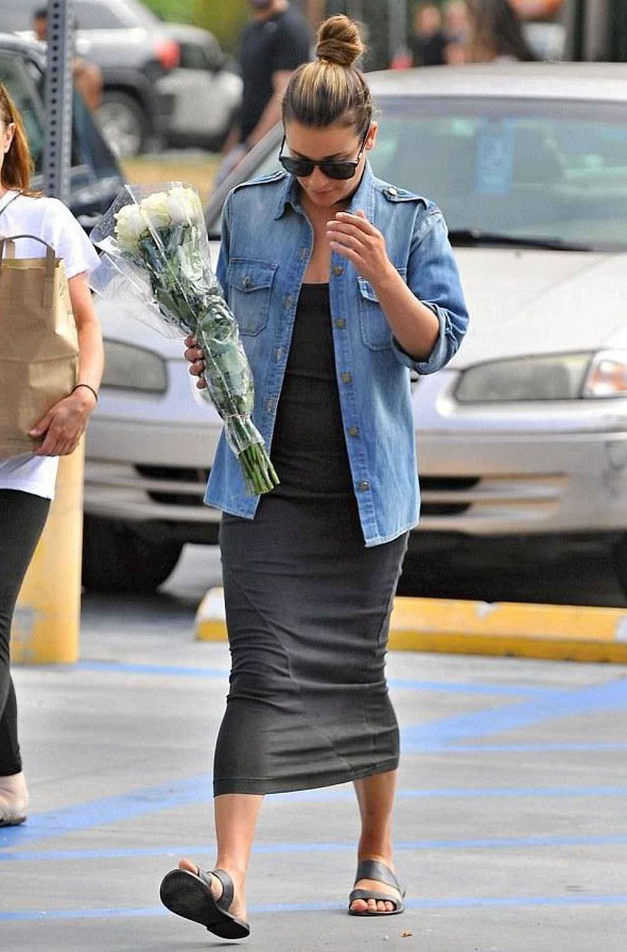 人気俳優のリア・ミシェルは、George Lovesのキャミワンピの上からデニムシャツを羽織ったカジュアルコーデ。ロングワンピに丈が長めシャツの合わせて作ったIラインで、スタイルアップを狙って。足元はレザータイプのスライドサンダルで着崩してリラックス感を。